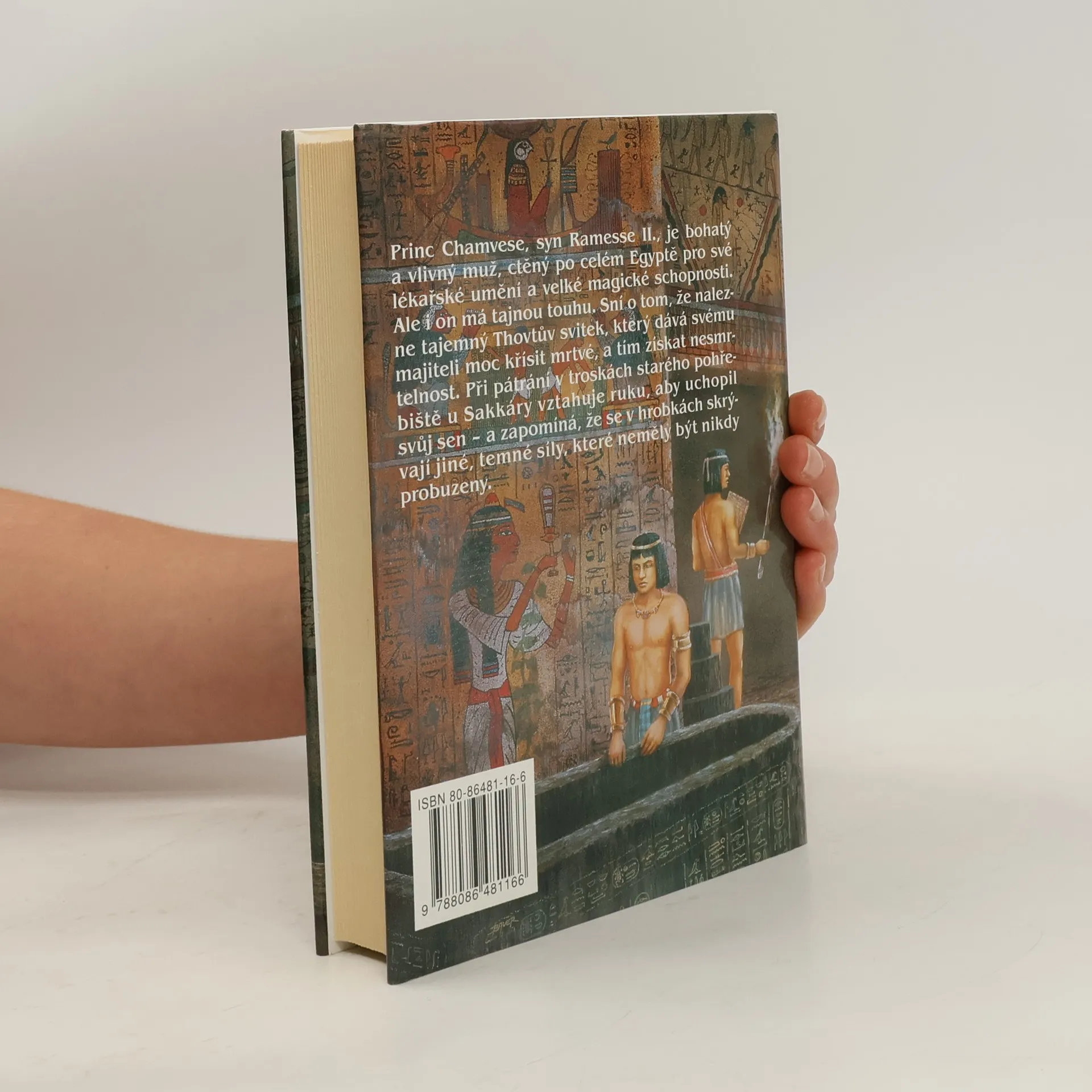 Román ze starověkého Egypta s hororovými prvky od známé kanadské autorky. Autorka použila starou egypskou legendu a na jejím základě napsala napínavý román. Hlavním hrdinou je princ Chamvese, syn Ramesse II.,kterému se podaří nalézt tajemný Thovtův svitek, který dává svému majiteli moc křísit mrtvé. Chamvese má možnost svitek zničit a žít dál klidný život v přepychu, ale nedokáže to a tím dá průchod působení nadpřirozených sil, se kterými není radno si zahrávat.