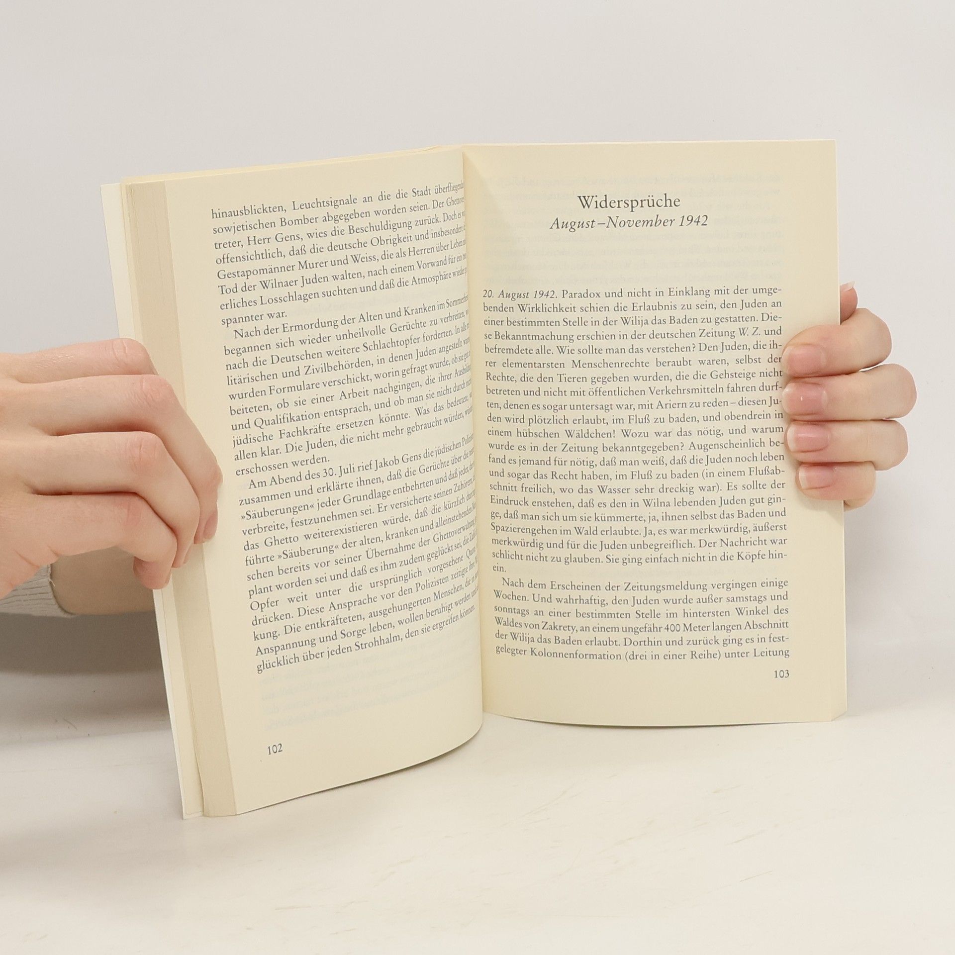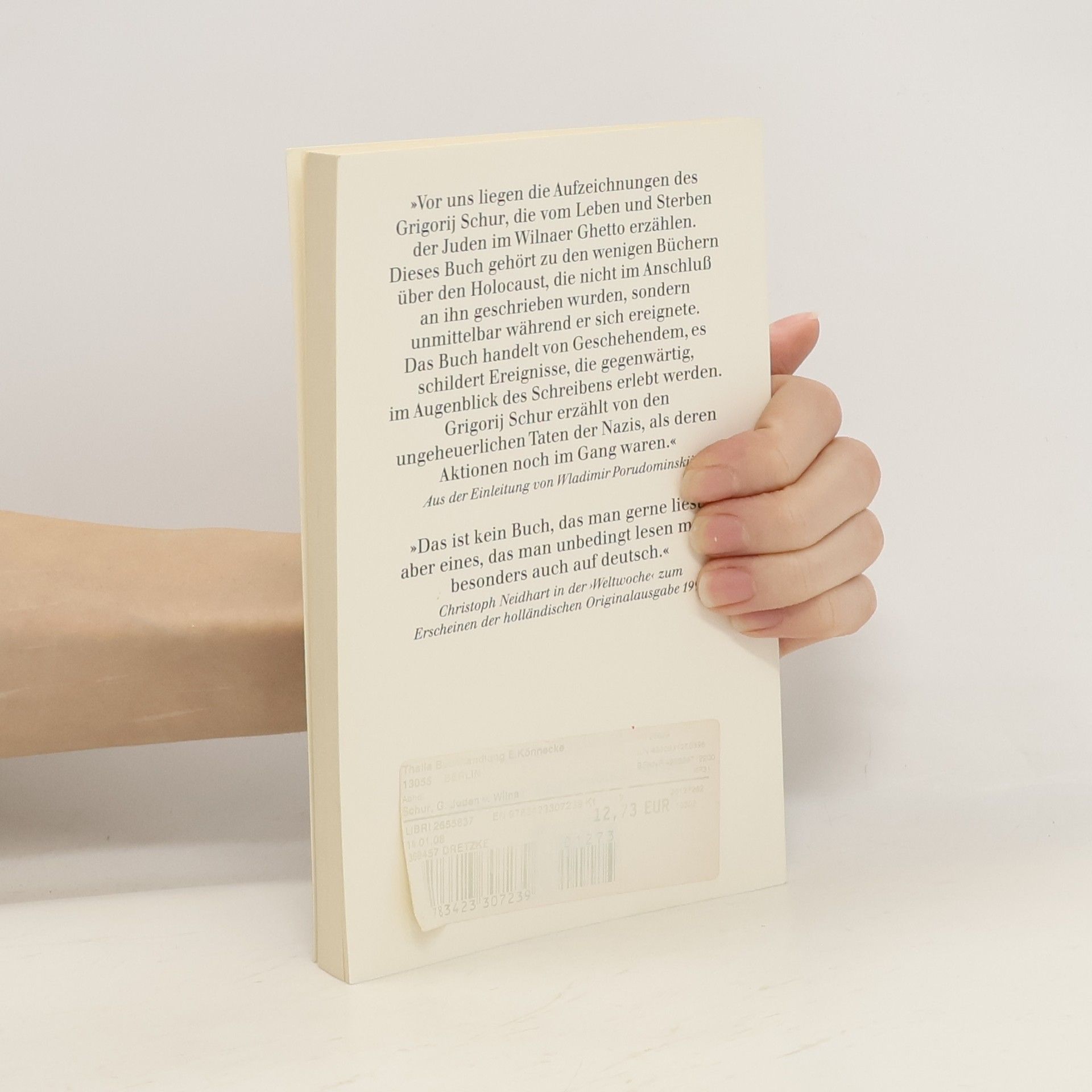 Als am 24. Juli 1941 erste deutsche Einheiten Wilna im östlichen Polen erreichten, lebten dort noch 70 000 Juden. Ende August hatten die Nazis die Hälfte von ihnen ermordet, die andere Hälfte wurde in ein Ghetto, später in ein Arbeitslager gesteckt. Einer von ihnen war der jüdische Journalist Grigori Schur. Mit bewundernswerter Objektivität notierte er, was er sah und hörte, um das Unfaßbare für die Welt nach dem Horror festzuhalten. 1944 wurde Grigori Schur bei einer der vielen Massenhinrichtungen ermordet. Seine Aufzeichnungen haben überlebt, weil eine Litauerin sie unter Einsatz ihres Lebens aus dem Ghetto schaffte und versteckte und weil sie bis zum Fall der Sowjetunion - wie durch ein Wunder - unentdeckt blieben. »Grigori Schur erzählt von den ungeheuerlichen Taten der Nazis, als deren Aktionen noch in Gang waren.« Wladimir Porudominski