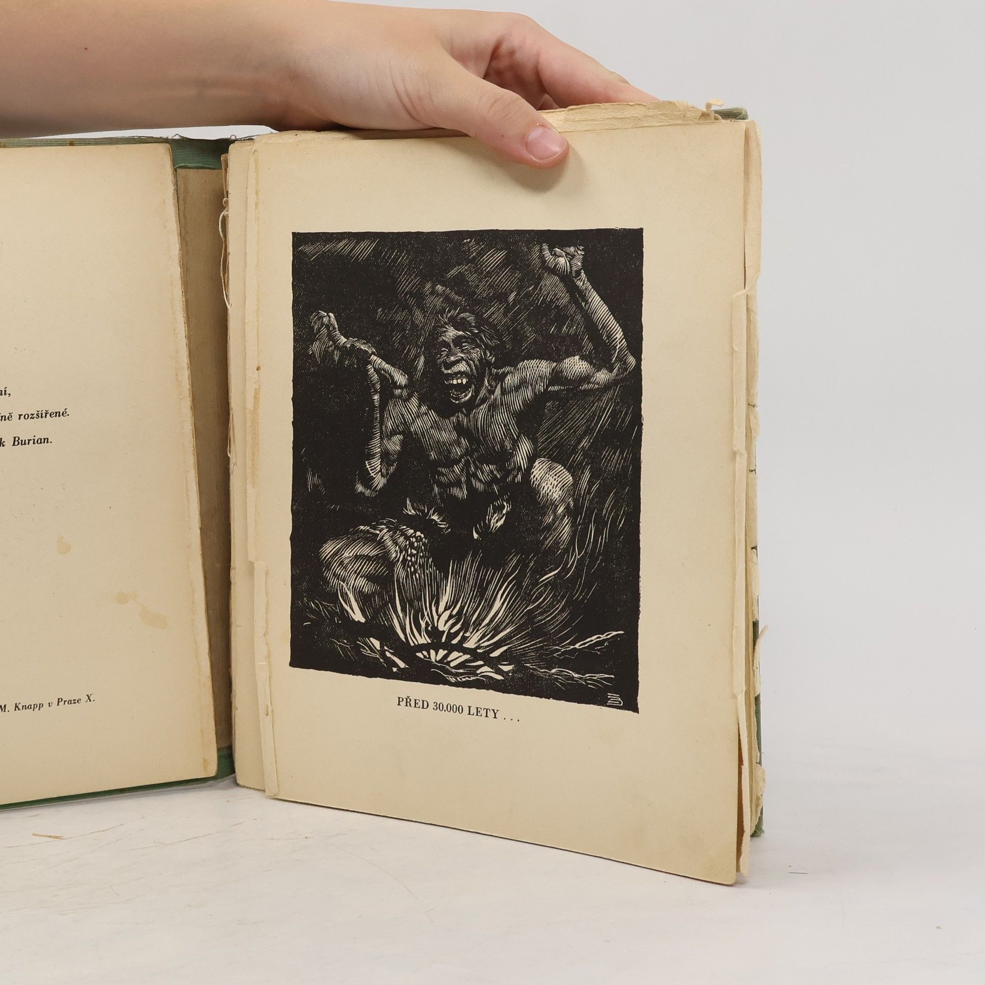 Na podkladě světově významných archeologických nálezů v českých zemích, zejména na Moravě, vyvolává autor formou románu pro mládež obraz naší přírody a života prvotně pospolné společnosti v době kamenné před dvaceti až třiceti tisíci lety. Tenkrát, kdy naše lesy a močálovité nížiny byly oživeny ještě mamuty, nosorožci, lvy, tygrem šavlozubým a stády sobů, byla vypuzena z věstonického sídliště tlupa diluviálních lovců, vyzbrojených primitivními zbraněmi a nástroji z pazourků a dorozumívajících se více posunky než souvislou řečí, za neustálých bojů s hladem zimou, krutou přírodou a nepřáteli nachází tlupa na čas útulek v studených jeskyních Moravského krasu, odkud po zastávce v Předmostí u Přerova na křižovatce cest pravěkých lidí, dospěje Polabím a Posázavím do konečného sídla na místech dnešní Libně. Její kulturní vzestup, patrný zvláště na hlavní postavě, bystrém hochu Kopčemovi, vrcholí jeho vynálezem rozněcování ohně dřívky. Páté přepracované a značně rozšířené vydání.