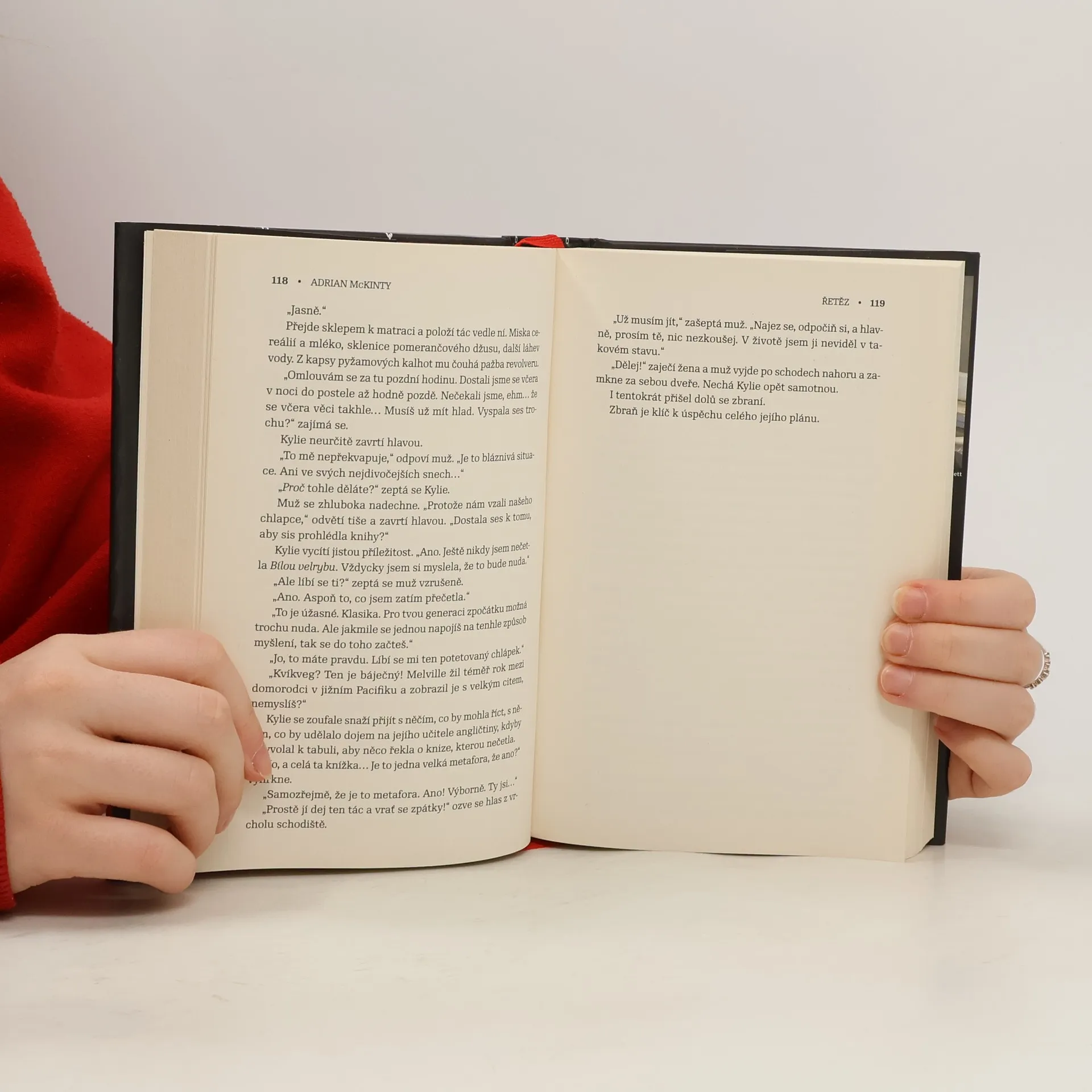 Musíte unést dítě, aby vaše dítě zůstalo naživu. Absurdní? Ano, jen dokud se to nestane právě vám. Na tomto půdorysu rozehrává jeden z nejvýraznějších současných autorů thrillerů a detektivek Adrian McKinty (doposud u nás vyšly tři jeho detektivní romány z řady s detektivem Seanem Duffym, zasazené do doby Nepokojů v Severním Irsku) příběh, jaký se snadno může stát noční můrou každého rodiče. Jsme v poklidném novoanglickém městečku, jemuž vládne tajuplný Řetěz. Nikdo o něm nemluví, nikdo se neodváží obrátit na policii ani na FBI. Vždyť jde o vaše dítě. Próza Adriana McKintyho má jako vždy spád a snadno vás nepustí ze svých spárů, připravte se, že vynecháte večeři a přejedete stanici, kde jste chtěli vystoupit. Zároveň se jeho text pozvedá z prvoplánového napětí k nevyřčeným otázkám po smyslu lidské existence, k hranicím morálky, k znepokojivému vědomí, že každé vítězství má svou cenu. Román, který ve vás bude dlouho doznívat.