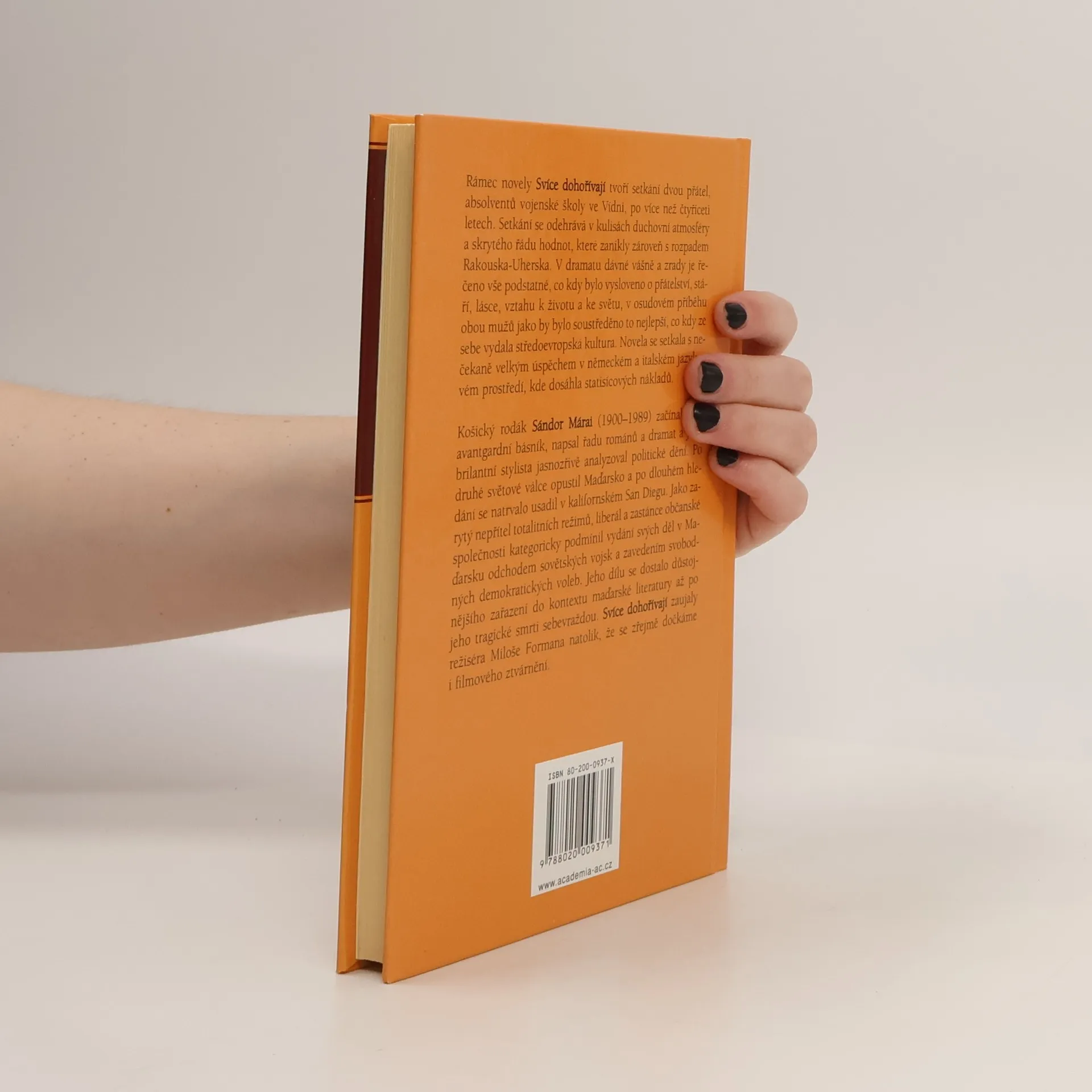 Po 2. světové válce emigroval Sándor Márai (1900–1989) do USA, odkud nesmiřitelně komentoval události ve své vlasti a v celém komunistickém táboře. I proto jeho prozaické dílo možná vždy vzbuzovalo větší pozornost svým politickým pozadím než literárními hodnotami. V novele Svíce dohořívají z roku 1942 jako by autor koncentroval vše dobré a krásné, co kdy literatura Rakousko-Uherska evropské kultuře dala, a především vše, co lze říci o přátelství, stáří, lásce, vztahu k životu a ke světu. Nové vydání této knihy po šedesáti letech se stalo velkou událostí v řadě evropských zemí a novela Svíce se dohořívají stala i předlohou nejnovějšího filmového scénáře režiséra Miloše Formana.... celý text