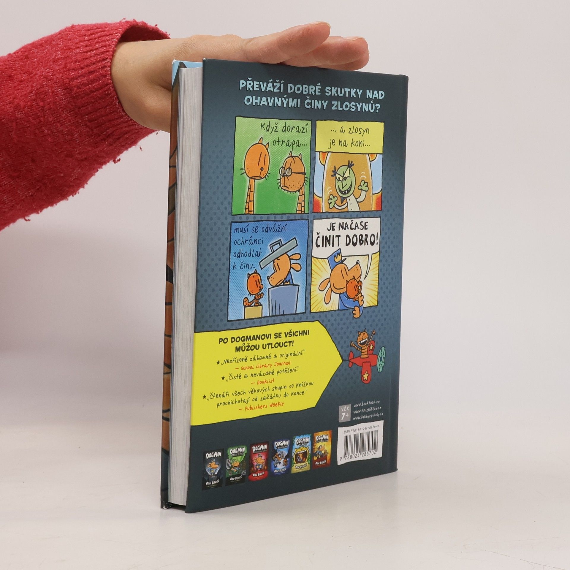 Je to vůbec možné? Zrodil se zbrusu nový zákeřný padouch! Říká si Dr. Yják a pořád tvrdí, že už ho známe (ale my víme své!). Rozhodl se využít Dogmanovy největší slabosti – lásky k míčkům! Jaká podlost. Dogmanovi kámoši Peťulka a Restart si ale usmyslí, že největšího psího policajta všech dob pořádně vytrénují, aby mičudovému pokušení odolal. Mezitím kujou své proradné pikle i jiní zloduši, nám už dobře známá parta, která si říká BLECHY… Jak to všechno dopadne? A jakou roli v tom hraje Komandér Cupcake? Dozvíte se v knize!