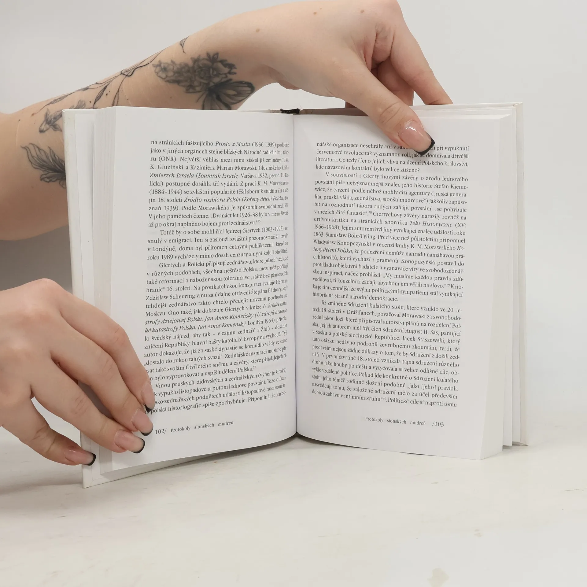 Protokoly siónských mudrců jsou nepochybně podstatnou součástí tzv. spiklenecké teorie dějin. Jsou jedním z článků dlouhého řetězu lidského podezírání, obviňování a obav. Ve známé knize Umberta Eca "Foucaltovo kyvadlo", věnované tajným společnostem i spiknutím, které osnují, čteme, že není nic snazšího než seznámit se s Protokoly siónských mudrců - stále se totiž někde objevují nová vydání. Skutečně, od chvíle prvního vydání roku 1903 vycházely Protokoly mnohokrát a jejich celkový náklad dosáhl několika, snad víc než deseti milionů výtisků. Vycházely (a nadále vycházejí) v různých jazycích - polsky i česky, rusky i slovensky, francouzsky i srbsky, ba i v arabštině a japonštině. pokaždé s úvodem či doslovem zdůrazňujícím pravost tohoto dokumentu. Výjimkou jsou dvě vydání, která se objevila téměř současně roku 1992. Jednou z nich je právě i kniha Janusze Tazbira, která se snaží čtenáře přesvědčit, že se v případě Protokolů setkáváme se zřejmým falzifikátem. Není to úloha vůbec snadná, uvědomíme-li si, kolik lidí má sklon pohlížet na minulost prizmatem spiklenecké teorie dějin. A Protokoly jsou klasickým příkladem právě takového pohledu na historii.
