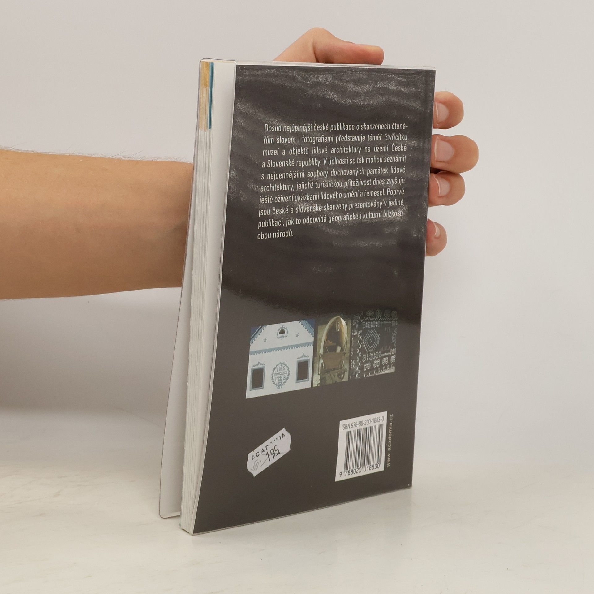 Dosud nejúplnější česká publikace o skanzenech slovem i fotografiemi seznámí čtenáře s téměř čtyřicítkou muzeí a objektů lidové architektury na území České a Slovenské republiky. V úplnosti se tak mohou seznámit s nejcennějšími soubory dochovaných památek lidové architektury, jejichž turistickou přitažlivost dnes zvyšuje ještě oživení ukázkami lidového umění a řemesel. Poprvé jsou české a slovenské skanzeny prezentovány v jediné publikaci, jak to odpovídá geografické i kulturní blízkosti obou národů.