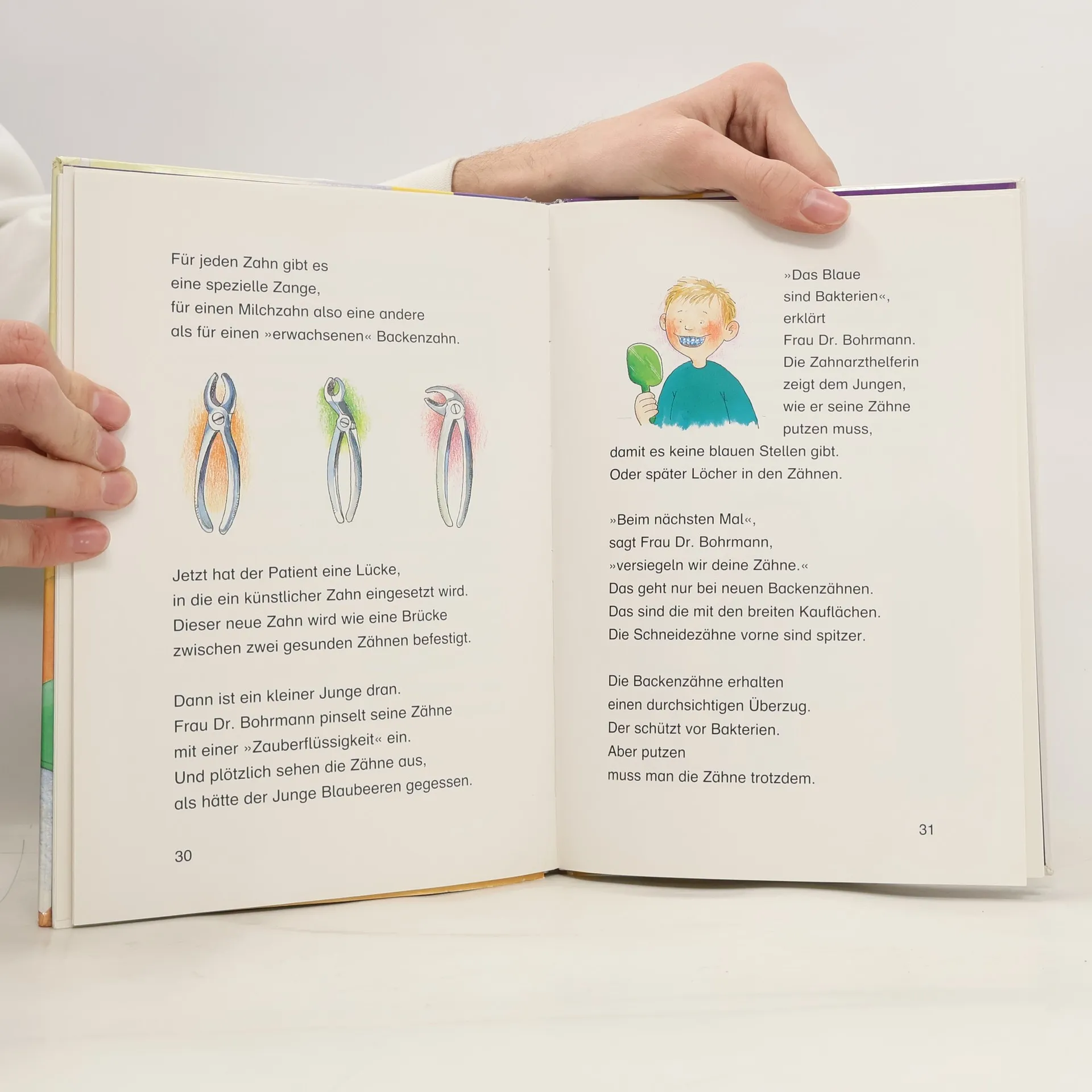 Opa Otto verliert beim Mittagessen sein Gebiss und muss schnell zur Zahnärztin. Frau Dr. Bohrmann behebt den Schaden absolut schmerzfrei und vermittelt nebenbei einen Einblick in ihre Praxis und ihre Arbeit.
