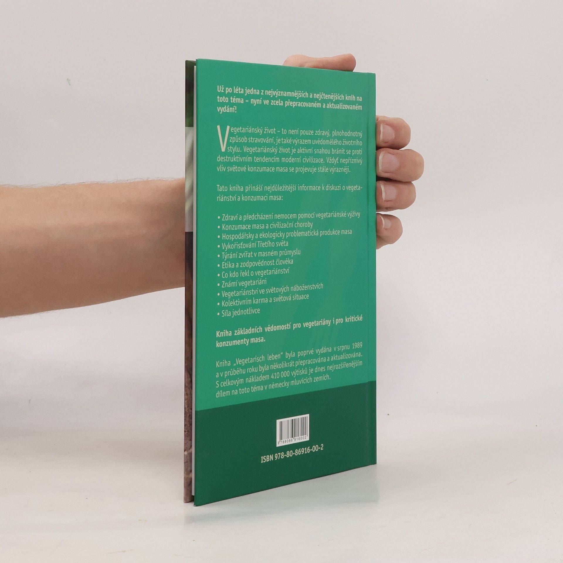 Vegetariánský život - to není pouze zdravý, plnohodnotný způsob stravování, je také výrazem uvědomělého životního stylu. Vegetariánský život je aktivní snahou bránit se proti destruktivním tendencím moderní civilizace. Vždyť nepříznivý vliv světové konzumace masa se projevuje stále výrazněji. Tato kniha přináší nejdůležitější informace k diskuzi o vegetariánství a konzumaci masa.