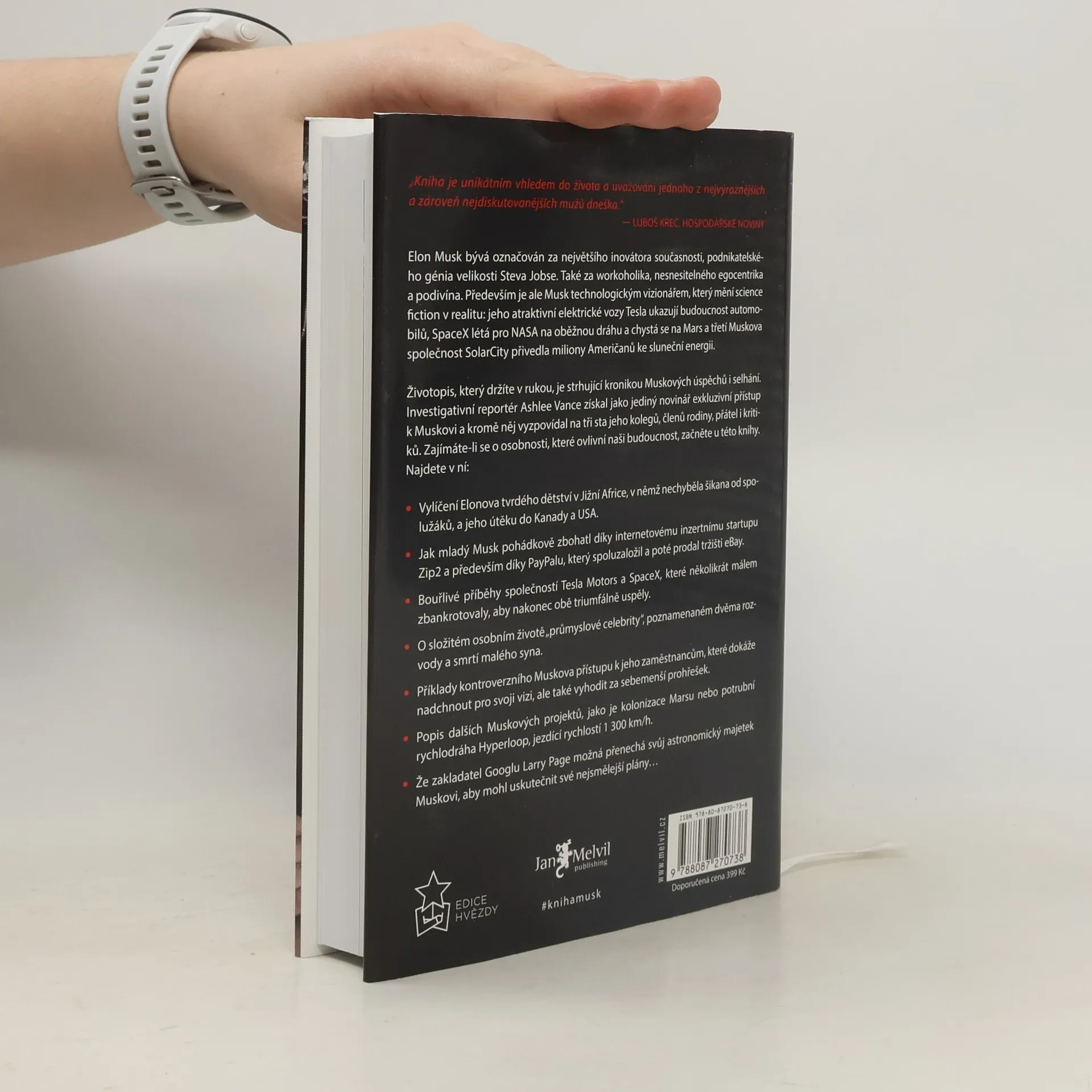 V Silicon Valley se po Stevu Jobsovi objevil nový idol – Elon Musk, označovaný za vizionáře a moderního Iron Mana. Ashley Vance, novinářka z Bloomberg Business Week, přináší vyvážený pohled na život tohoto podnikatelského titána. Po desítkách hodin strávených s Muskem, jeho spolupracovníky, přáteli i kritiky, vytvořila komplexní obraz inteligentního a odhodlaného muže, který usiluje o své sny. Biografie zachycuje jeho dětství v Pretorii, první miliony a skupinu podivínů z PayPalu, přičemž se zaměřuje na tři hlavní motivy: čistou energii, internet a vesmír. Musk zahájil podnikání s firmou Zip2, následně založil X.com, později PayPal, a po jeho prodeji se pustil do vesmírného projektu SpaceX, který úspěšně získal kontrakt s NASA. Kromě vesmíru se Musk věnoval i čisté energii, zakládající Tesla a Solar City. Tesla se stala snem ekologů i milovníků designu. Kniha nezapomíná ani na osobní a pracovní výzvy, včetně rozvodů a kontroverzních vztahů se zaměstnanci. Musk věří, že budeme nuceni osídlovat vesmír, a jeho plány na Mars se díky úspěchům jeho firem zdají stále reálnější.