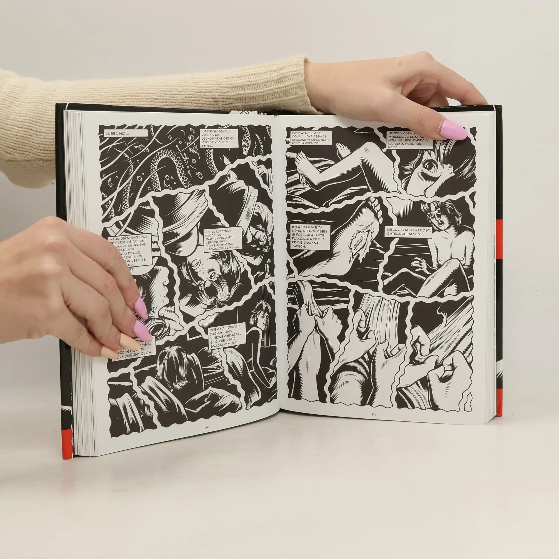 Měli jste pocit, že vaše puberta (akné, trapné první sexuální zážitky, úděsné mejdany, odporná chuť laciného alkoholu) byla něco příšerného? Charles Burns vám ve svém zásadním grafickém románu vysvětlí, že to byl ještě čajíček. Střední škola na americkém maloměstě – to je podle mnoha hororových i jiných autorů (v čele se Stephenem Kingem) pozemská obdoba pekla. Charles Burns tuto představu dovedl do dokonalosti. Jsme na okraji Seattlu v polovině 70. let 20. století. V době, kdy středoškoláci jsou už rovnýma nohama v sexuální revoluci a kouří marjánku, být hipíkem už sice vyšlo z módy, ale David Bowie je se svými kostýmy přeci jen ještě „trochu moc divnej“. Do života protagonistů drtivě dopadne nová pohlavně přenosná nemoc, která postihuje jen teenagery a která jim způsobuje různé bizarní mutace: druhá ústa na hrudi, maličké růžky, svlékající se hadí kůže… A bude hůř. Lidé se začnou měnit i uvnitř. A začnou i umírat… Charles Burns své hypnoticky, děsivě krásné veledílo vytvářel deset let. To zní hrozně, když si ale pozorněji prohlédnete jeho černobílou dokonalost, rafinované symetrie dvoustran, působivá opakování motivů a nevídaně zdařilé zachycení početných postav, spíš se podivíte, jaktože mu to netrvalo let dvacet.