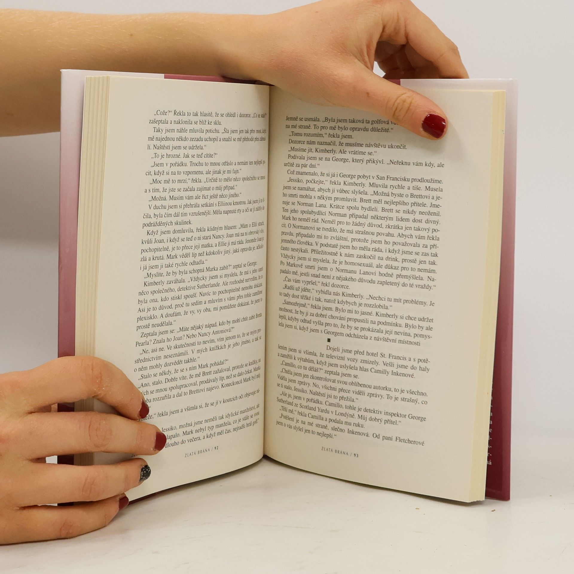 Krimi podle úspěšného TV seriálu, jehož hrdinkou je Jessica Fletcherová, spisovatelka a amatérský detektiv v jedné osobě. V tomto příběhu řeší otazníky, za nimiž se klene proslulý most v San Francisku. Úspěšná autorka detektivních příběhů Jessica Fletcherová bydlí v malém městečku ve státě Maine. Je to sympatická žena středních let, vtipná, chytrá, odvážná a energická. Kromě psaní detektivek Jessica často řeší skutečné kriminální případy, které ji náhoda přivane do cesty. I když je řeší s pomocí mužů zákona, uplatňuje místo pěstí svůj ženský důvtip a rozum. Jak název napovídá, příběh Zlatá brána se odehrává v San Franciscu, kam Jessica přijela k vůli propagaci své poslední knihy. Jednou z akcí jejího bohatého programu je i beseda ve zdejší ženské věznici. Zde se seznámí s Kimberly Stefferovou, ženou odsouzenou za vraždu svého manžela. Vše však nasvědčuje tomu, že Kimberly je odsouzena neprávem a skutečný vrah je na svobodě... Jessica se rozhodne dostat Kimberly na svobodu a málem sama přijde o život, když se ji někdo pokusí shodit z mostu Zlatá brána. To ji ale neodradí a příběh vyřeší až do šťastného konce. Ještě že má silnou oporu ve svém příteli Sutherlandovi, vrchním inspektorovi Scotland Yardu, který je shodou okolností zrovna v San Franciscu na konferenci o kriminalistice.
