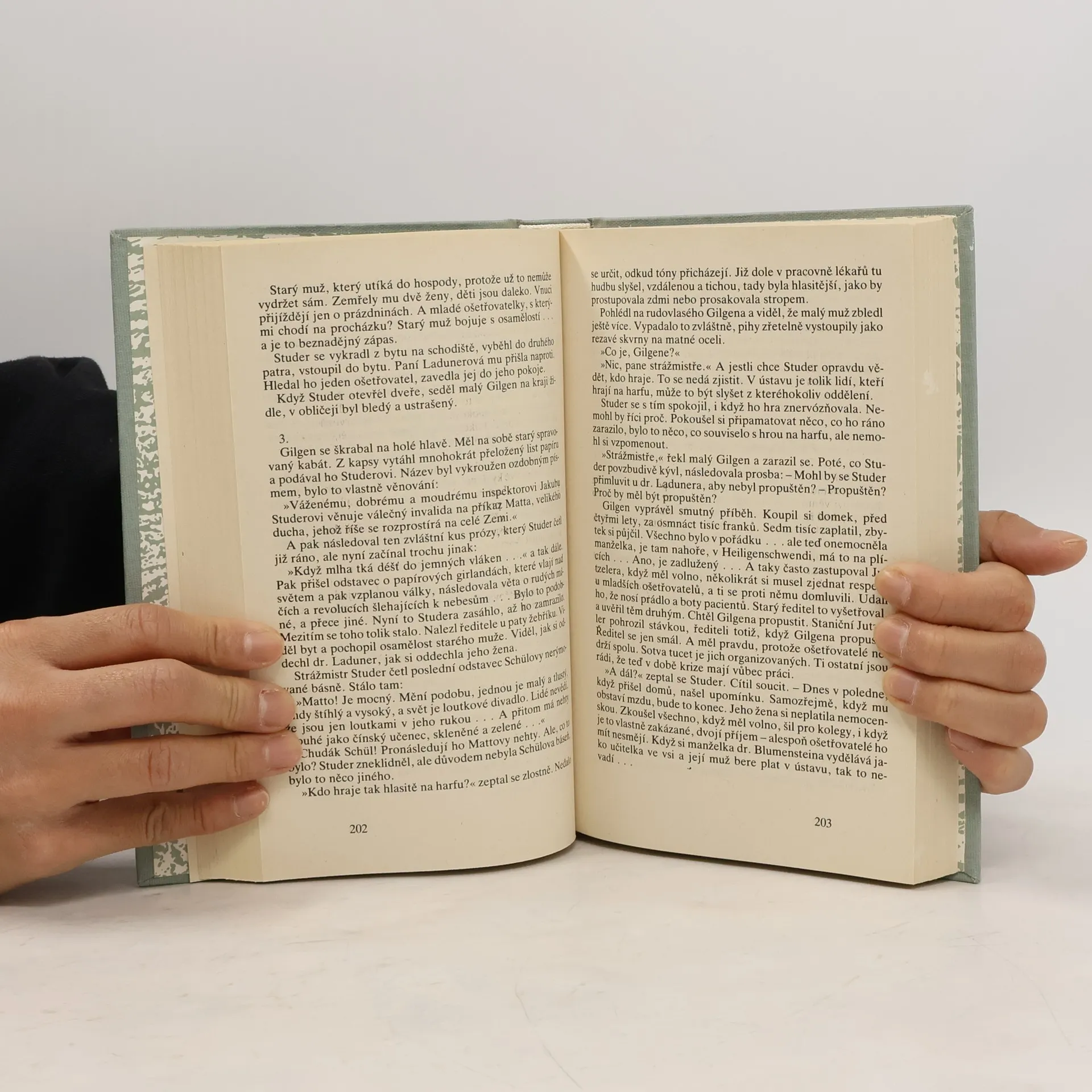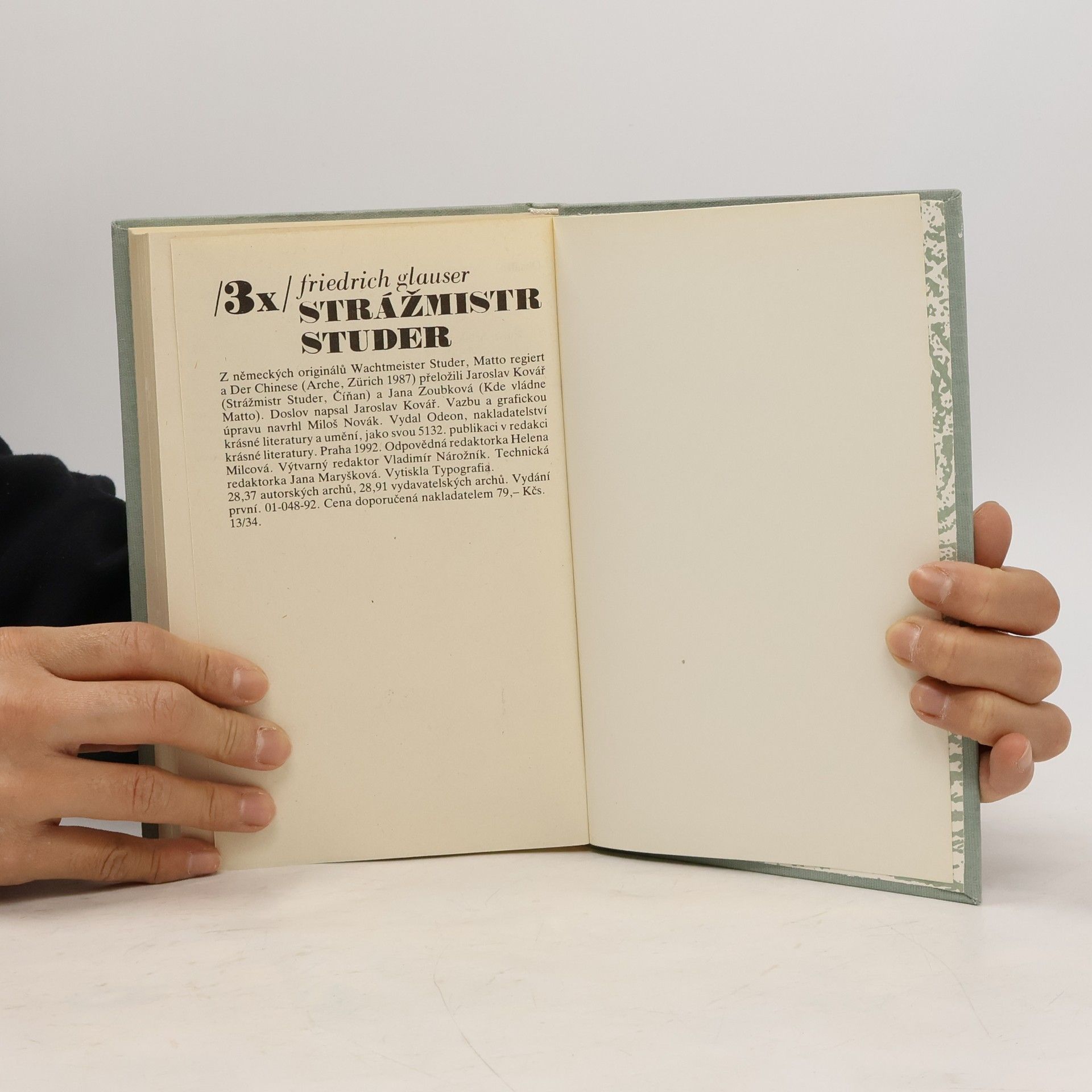 Kniha obsahuje tři příběhy: 1. Strážmistr Studer - přeložil Jaroslav Kovář. 2. Kde vládne Matto - přeložila Jana Zoubková. 3. Číňan - přeložil Jaroslav Kovář. Doslov : „Friedrich Glauser - švýcarský Simenon?“ napsal Jaroslav Kovář. Vydání první.