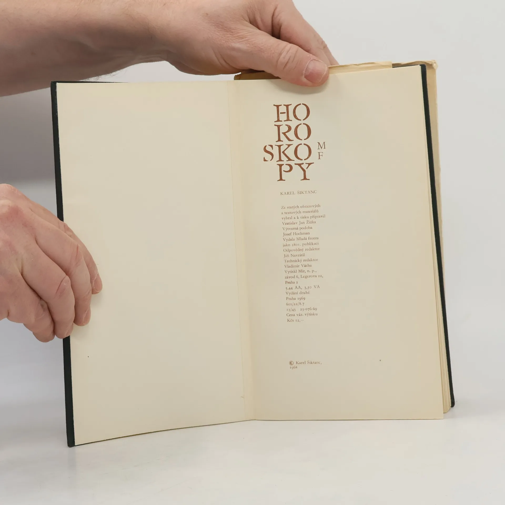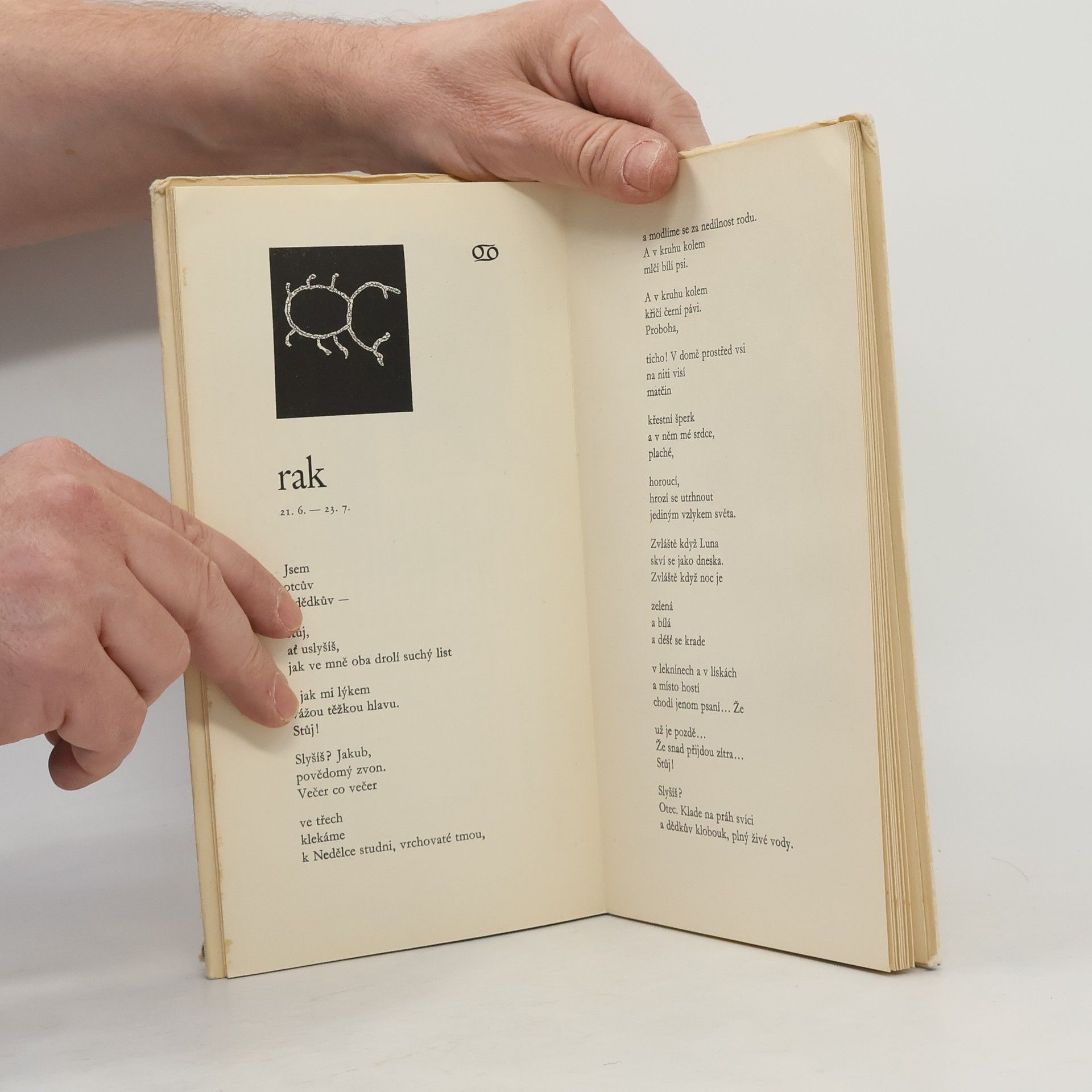 Bibliofilské vydání sbírky, v níž se autor vybraným básnickým jazykem pokouší zobrazit znamení horoskopů z nejrůznějších pohledů Text Karel Šiktanc. Výtvarná podoba Josef Hofman a Vratislav Jan Žižka.