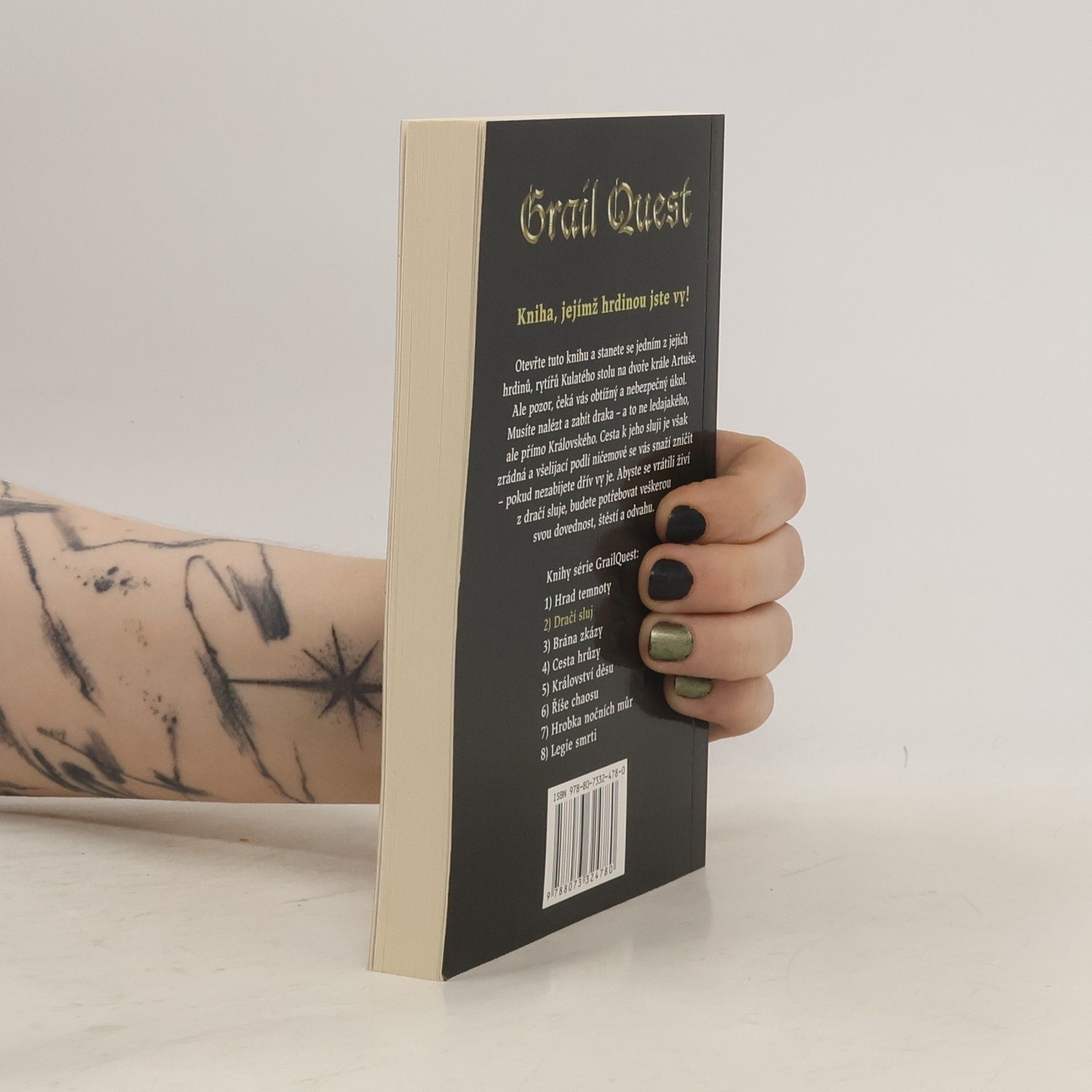 Slavnou říši Avalon sužují draci, mocní čarodějové a zlo ve všech svých nejhorších podobách. Proto musí rytíři od Kulatého stolu na dvoře krále Artuše na Camelotu neustále prokazovat svou odvahu - ale jen ty můžeš vykonat ty nejhrdinštější činy ze všech. V tomto dobrodružství máš za úkol nalézt a zabít draka, který plení zemi a zanechává za sebou zkázu a smrt. Tvoje cesta je plná zrádných léček a strašlivých stvůr, které musíš přemoci a zabít, než ony udělají totéž tobě. Každá stránka skrývá nové výzvy a volby, bitvy, které vybojuješ, rozhodnou o tom, zda na této výpravě uspěješ, nebo skončíš v žaludku strašlivého ještěra. Druhá herní kniha ze série GrailQuest.