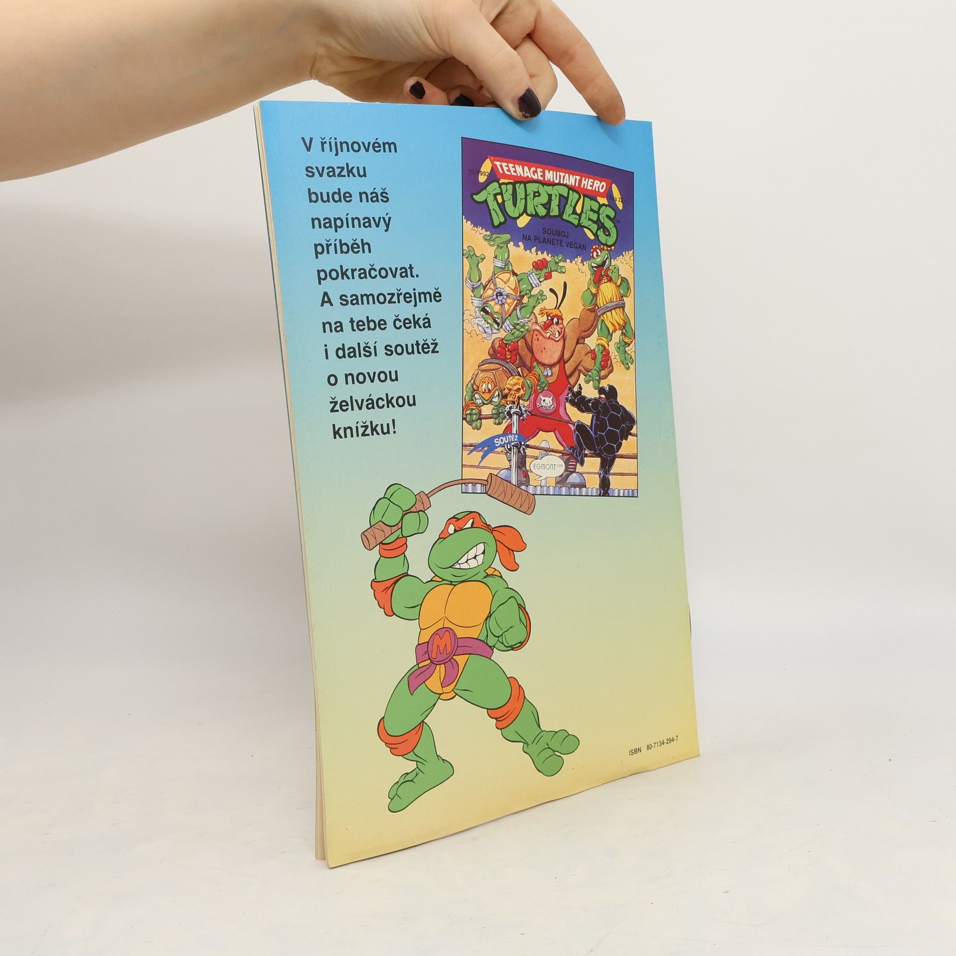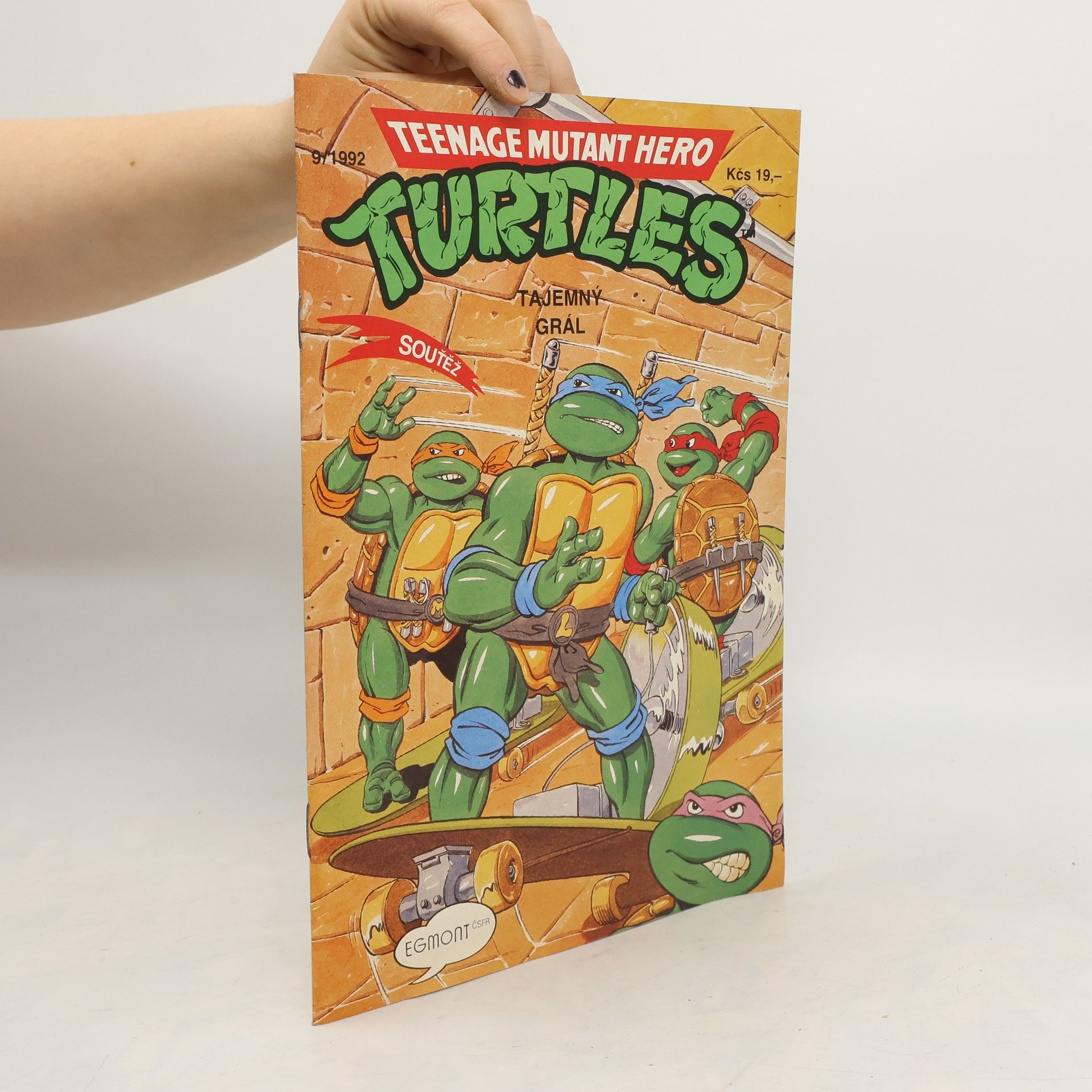 Příběh: Tajemný grál Sešit ze serie příběhu neunávných želvých bojovníků a milovníků pizzy - Donatellem, Michelangelem a Raffaelem. A nejen s nimi se setkáte, ale také s April O'Neilovou, atraktivní reportérkou, s Třískou, učitelem starého japonského bojového umění nindžutsu, a samozřejmě s Trhačem, jejich úhlavním nepřítelem, který chce ovládnout celý svět...