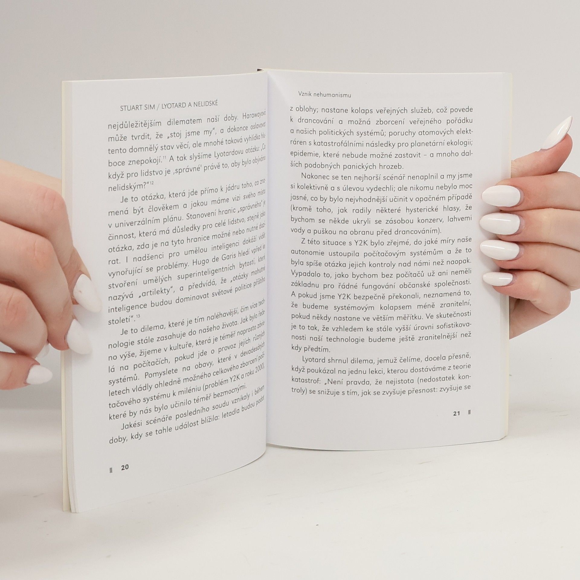 Pozdní práce Jeana-Françoise Lyotarda prozrazují hlubokou nedůvěru vůči “nelidskému” – procesu, ve kterém jsme “dehumanizováni” silami “vývoje” (tj. pokročilého kapitalismu). V extrémních případech dokonce zjišťujeme, že ony síly plánují nahradit nás počítačovou technologií. S ohledem na moc, kterou třímá “techno-věda”, se Lyotard obává o naši budoucnost a vyzývá nás, abychom vzdorovali tomuto směřování k “ne-humanismu”. Jestliže se však kolem sebe rozhlédneme, vidíme, že nehumanismus už tu je s námi v mnoha podobách: lékařská technologie, umělá inteligence a umělý život jsou toho výraznými příklady. Hranice mezi lidstvem a technologií se stále více zamlžuje a najde se mnoho takových, kteří jsou ochotni tento vývoj obhajovat a spatřují v něm naši budoucnost. V této debatě je v sázce samotná koncepce toho, co to znamená být lidský. Lyotardova otázka “Co když pro lidstvo je ‚správné‘ právě to, aby bylo obýváno nelidským?” má pro nás pro všechny kritické důsledky.