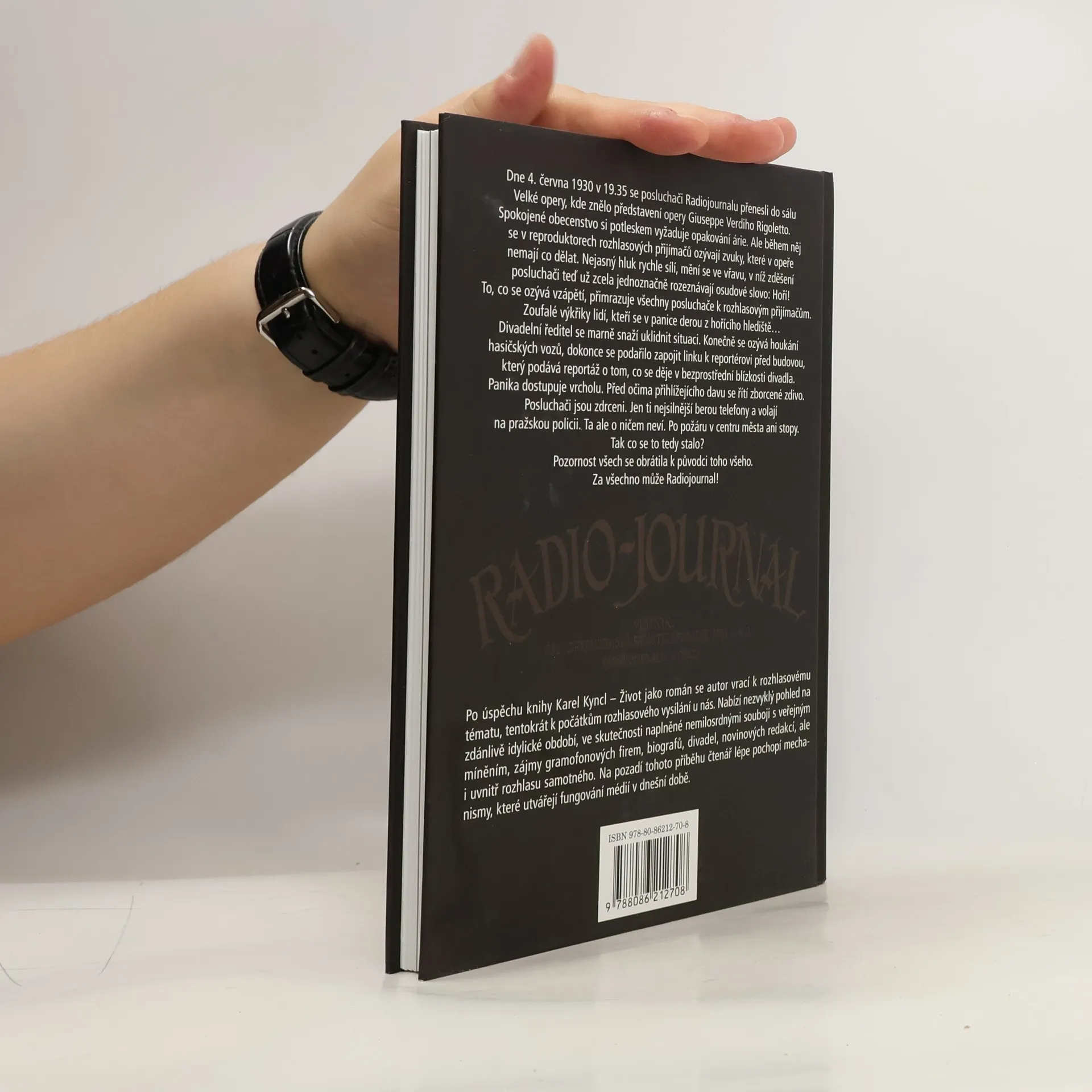 Dne 4. června 1930 v 19.35 se posluchači Radiojournalu přenesli do Velké opery, kde probíhalo představení opery Giuseppe Verdiho Rigoletto. Spokojené obecenstvo si žádá opakování árie, ale během něj se v reproduktorech ozývá neznámý hluk, který se mění ve vřavu. Zděšení posluchači rozpoznávají osudové slovo: Hoří! Následují zoufalé výkřiky lidí prchajících z hořícího hlediště. Divadelní ředitel se snaží situaci uklidnit, ale brzy se ozývá houkání hasičských vozů a reportér před budovou podává zprávy o chaosu. Panika vrcholí, když se před očima davu zborcené zdivo. Posluchači jsou zdrceni a jen ti nejsilnější volají na pražskou policii, která však o ničem neví. Požár v centru města není nikde vidět. Pozornost se obrací k Radiojournalu, který je obviňován za tuto tragédii. Autor, po úspěchu knihy Karel Kyncl - Život jako román, se vrací k rozhlasovému tématu a zkoumá počátky rozhlasového vysílání v Čechách. Nabízí pohled na zdánlivě idylické období, které bylo ve skutečnosti poznamenáno souboji s veřejným míněním, zájmy gramofonových firem, biografů, divadel a novinových redakcí, stejně jako vnitřními konflikty v rozhlasu. Tento příběh pomáhá čtenářům lépe pochopit mechanismy, které formují fungování médií dnes.