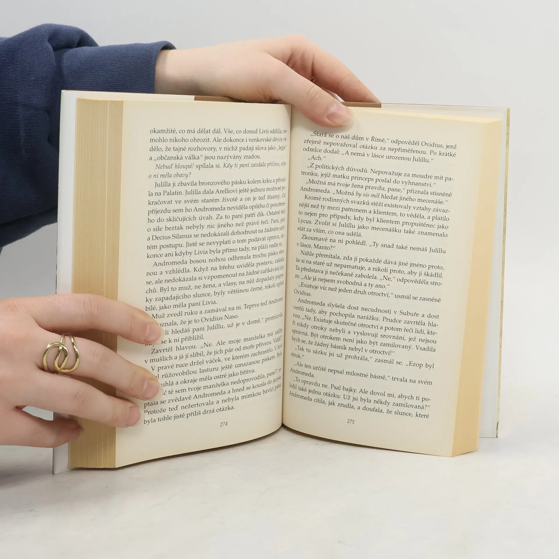 Historický příběh dvou rozdílných mladých žen, trpasličí otrokyně a urozené dívky, se odehrává ve starověkém Římě. Učenlivá a houževnatá trpaslice Andromeda slouží Julille, vnučce panovníka Augusta. V prostředí plném intrik si obě ženy chtějí prosadit své vlastní cíle a získat od života co nejvíce: moc nad ostatními, či v případě Andromedy pouhé přežití a snad i svobodu. Když je pak za nevěru Julilla svým dědečkem poslána do vyhnanství, s otrokyní ji spojí jedno velké tajemství. Barvitý román z nadmíru strhujícího prostředí Říma v sedmém roce po Kristu, mezi jehož hrdiny autorka zařadila i básníka Publia Ovidia Nasa.