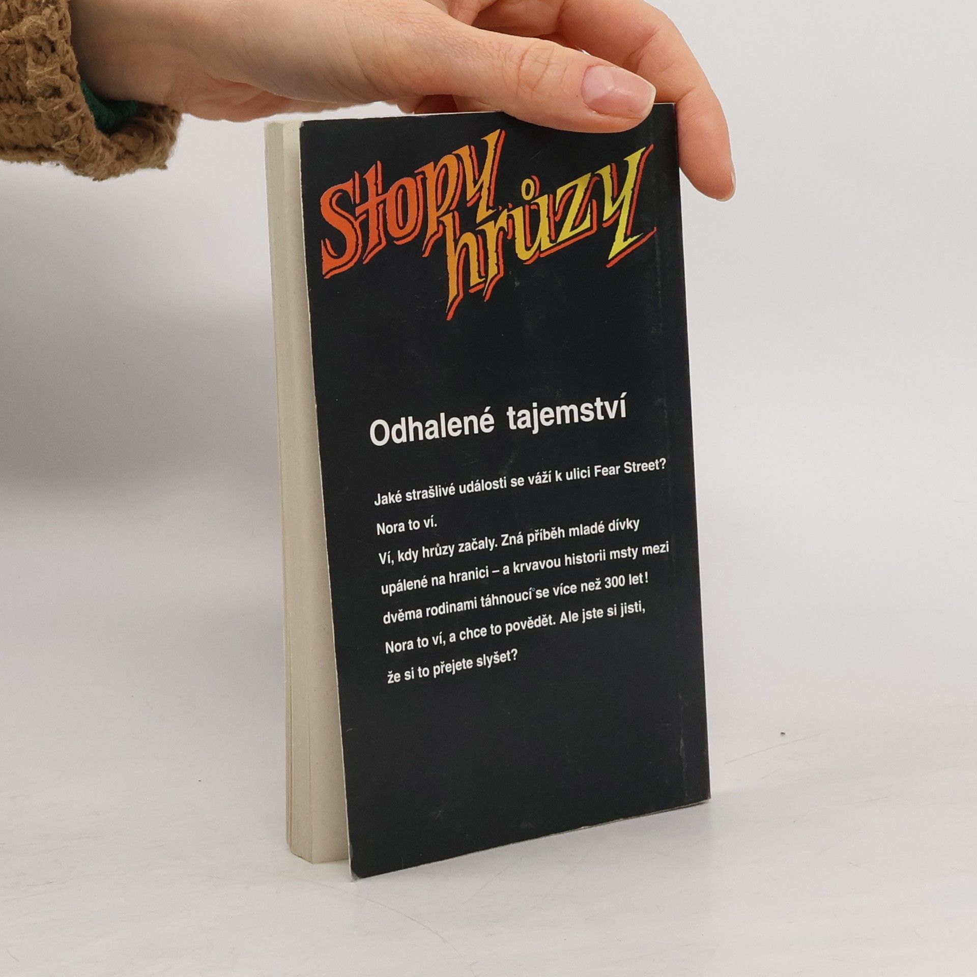 Stopy hrůzy 51, ze série Ulice strachu. Odhalené Tajemství! Jaké strašlivé události se váží k ulici Fear Street? Nora to vi. Ví, kdy hrůzy začaly. Zná příběh mladá dívky upálené na hranici - a krvavou historii msty mezi dvěma rodinami táhnoucí se více než 300 let! Nora to ví, a chce to povědět. Ale jste si jisti, že si to přejete slyšet?