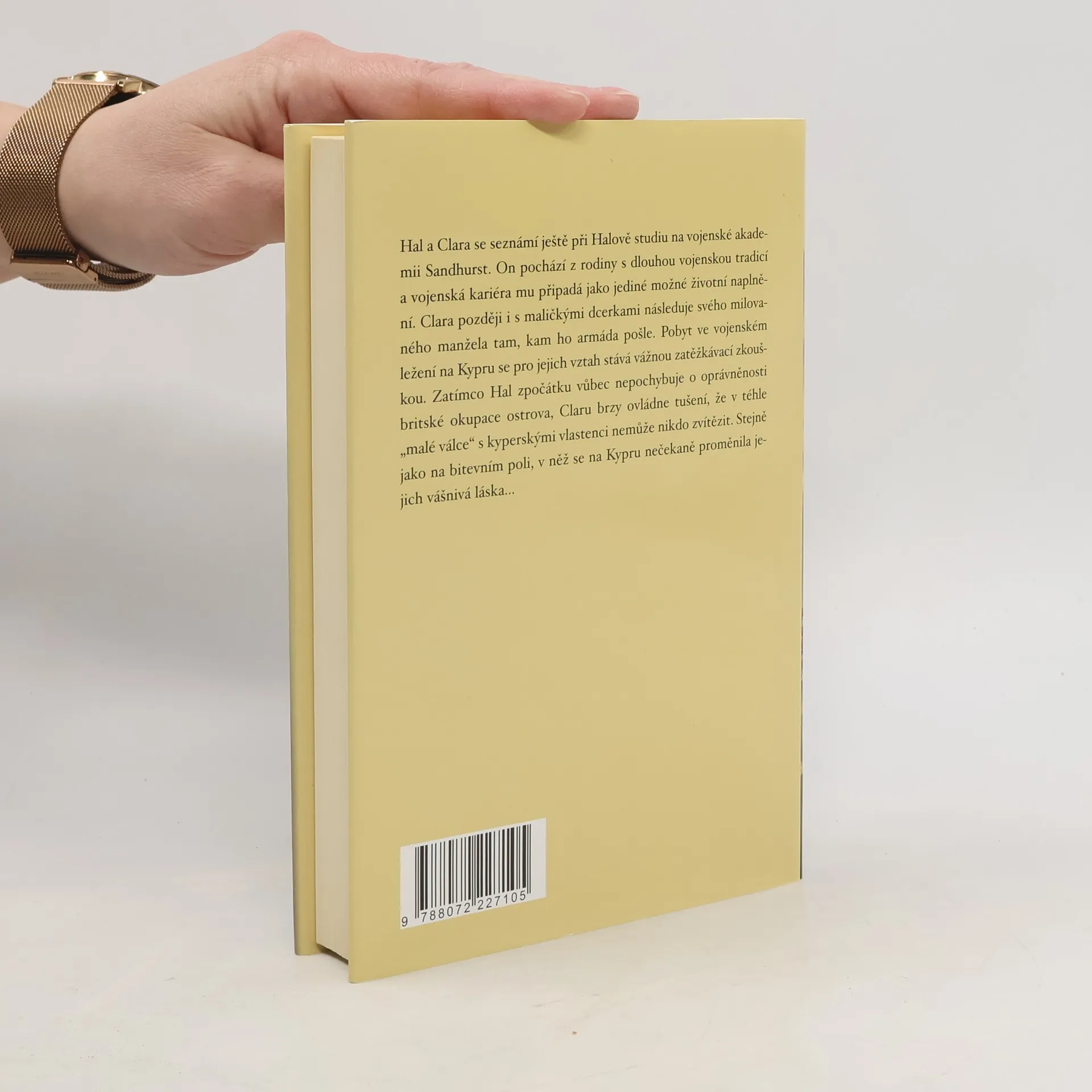 Od autorky bestselleru Štvanec. Hal a Clara se seznámí ještě při Halově studiu na vojenské akademii Sandhurst. On pochází z rodiny s dlouhou vojenskou tradicí a vojenská kariéra mu připadá jako jediné možné životní naplnění. Clara později i s maličkými dcerkami následuje svého milovaného manžela tam, kam ho armáda pošle. Pobyt ve vojenském ležení na Kypru se pro jejich vztah stává vážnou zatěžkávací zkouškou. Zatímco Hal zpočátku vůbec nepochybuje o oprávněnosti britské okupace ostrova, Claru brzy ovládne tušení, že v téhle "malé válce" s kyperskými vlastenci nemůže nikdo zvítězit. Stejně jako na bitevním poli, v něž se na Kypru nečekaně proměnila jejich vášnivá láska...