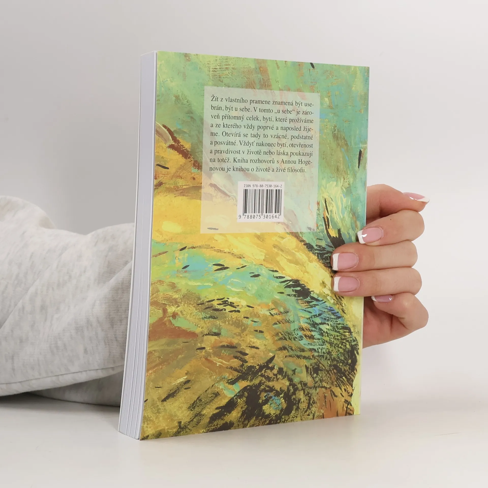 Žít z vlastního pramene znamená být usebrán, být u sebe. V tomto "u sebe" je zároveň přítomný celek, bytí, které prožíváme a ze kterého vždy poprvé a naposled žijeme. Otevírá se tady to vzácné, podstatné a posvátné. Vždyť nakonec bytí, otevřenost a pravdivost v životě nebo láska poukazují na totéž. Kniha rozhovorů s Annou Hogenovou je knihou o životě a živé filosofii, knihou o podstatném v životě.