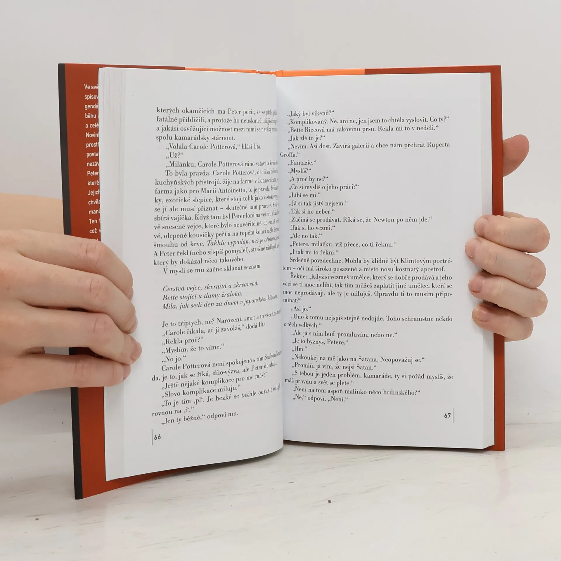 Rebecca je editorkou „prestižního“ nezávislého časopisu (který nikdo nečte), Peter vlastní galerii - vyhledává talenty, které draze prodává zazobaným klientům. Jejich manželství klape do chvíle, kdy se Peter znenadání zamiluje do manželčina bratra Ethana. Ten taky „dělá něco kolem umění“, což v praxi znamená, že se fláká a bere drogy. Peter pochopitelně usilovně řeší, jak TOHLE vysvětlí své ženě… Cunningham, autor geniálních HODIN, ve svém nejnovějším díle a v nejlepší formě!