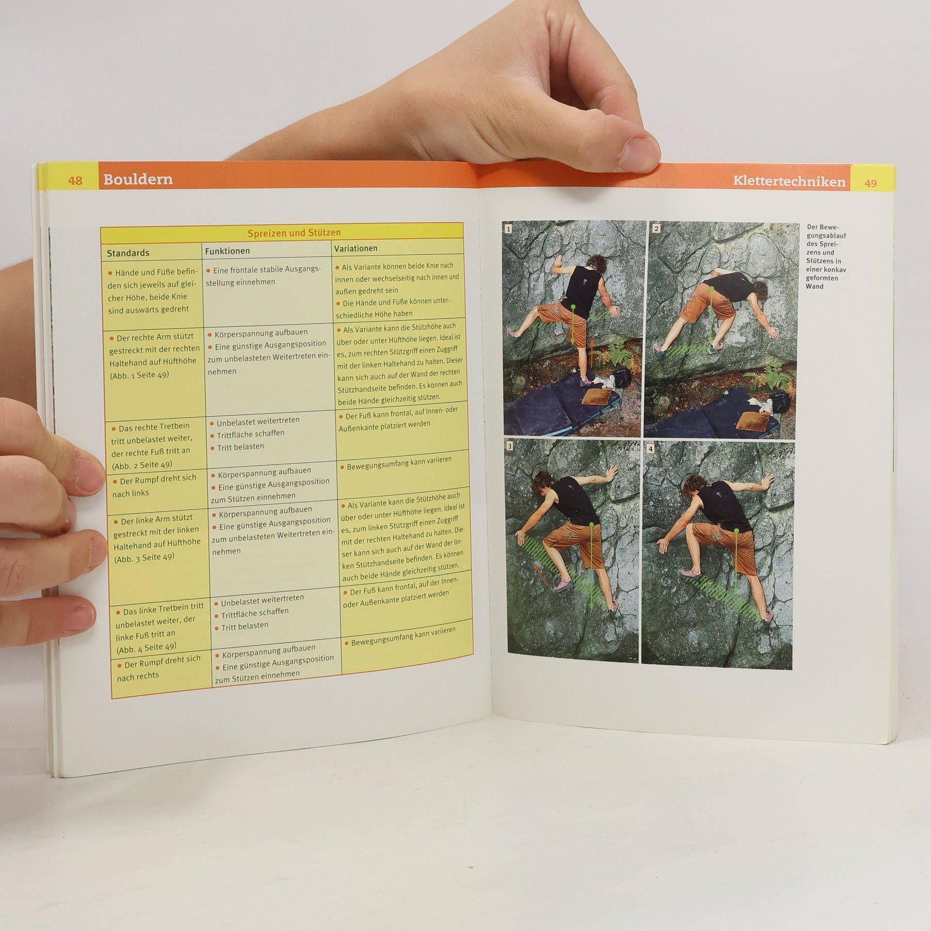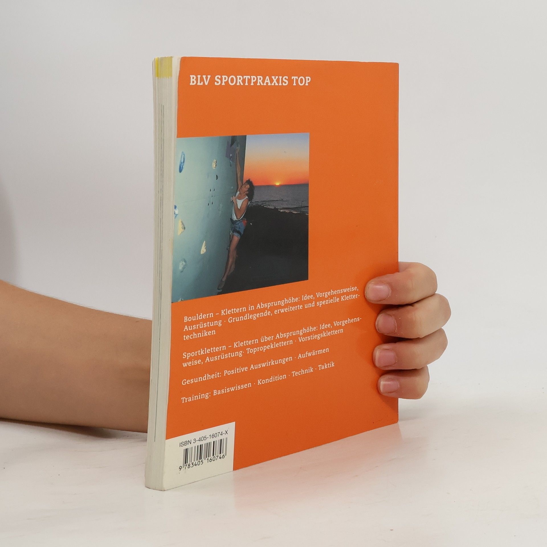 Sportklettern erstmals ausführlich mit Bouldern (Klettern in Absprunghöhe): Ausrüstung, Klettertechniken und Bewegungstaktik, Sicherungstechnik, Gesundheit, Training.