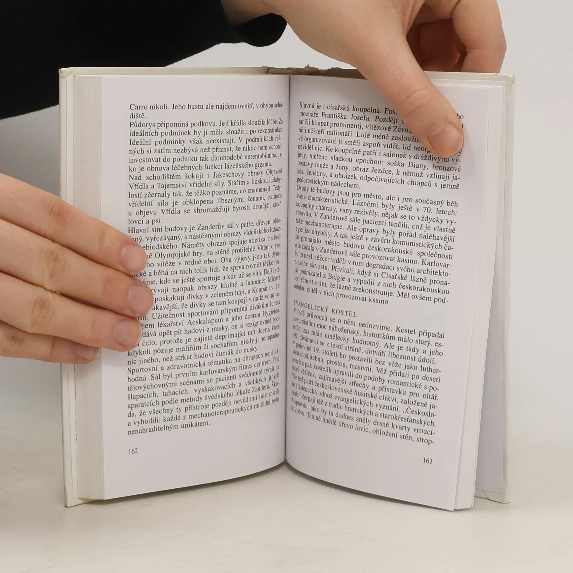 Tahle knížka není ani turistický průvodce, ani historické pojednání, ba ani sborník lázeňských klepů, nýbrž volně organizovaná směs toho všeho. Pojednává o městě, v jehož stráních a staletých zdech dodnes zní barokní zvony, flétny empiru, beethovenovské burácení, valčíky sladké epochy i nostalgický swing...