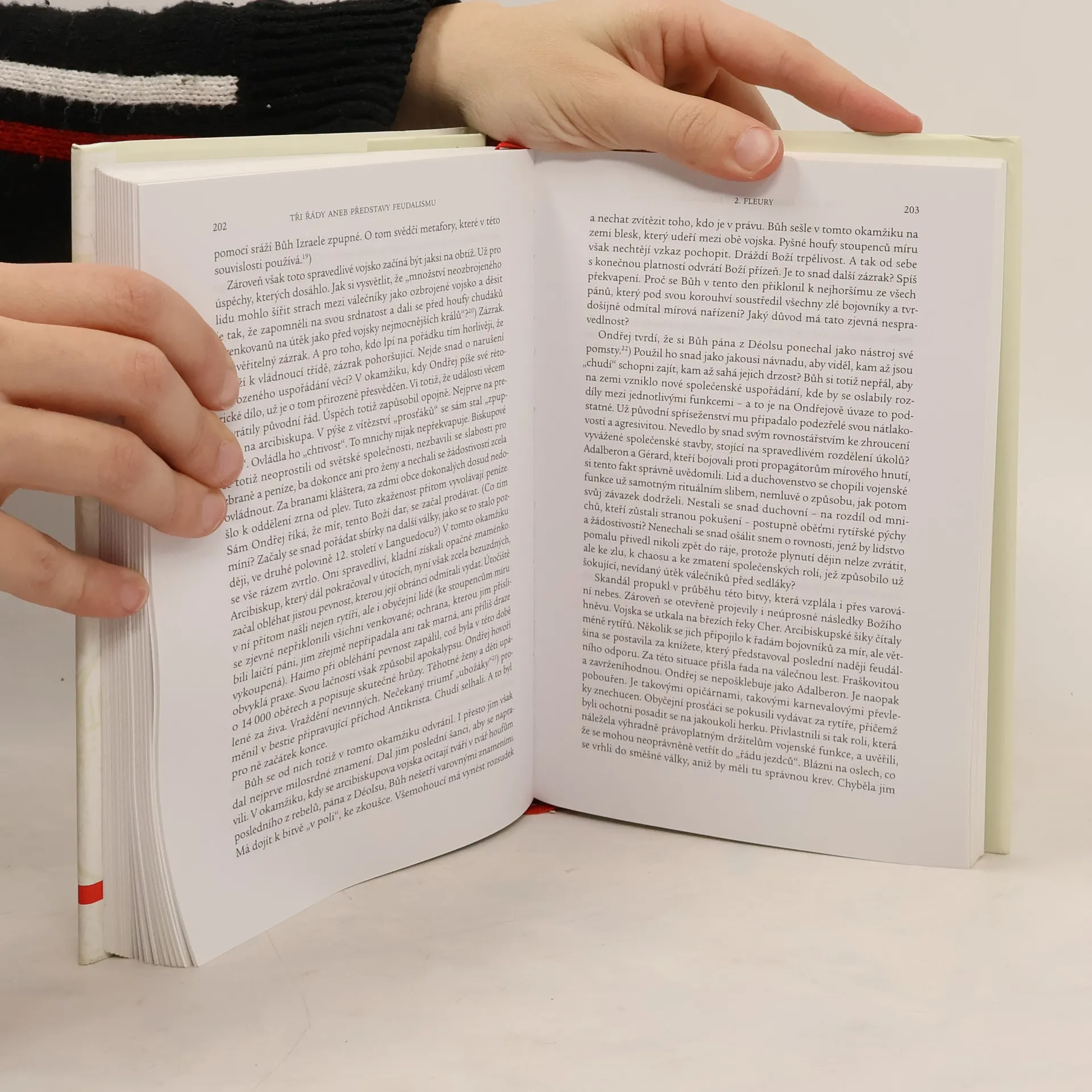 Podtitul: Aneb představy feudalismu. Základní práce v českém prostředí velmi známého francouzského historika, G. Duby zde na základě bohatého souboru středověkých pramenů zkoumá vznik učení o trojím lidu, jeho intelektuální zázemí, pronikání do obecných představ o božském uspořádání tehdejšího světa. Podle Dubyho zkonstruovali někdy na přelomu 10. a 11. století model trojjediného božského uspořádání společnosti francouzští vzdělanci a teologové ve snaze posílit význam církve a duchovních ve středověké společnosti, s cílem sakralizovat tehdy velmi oslabenou panovnickou moc. V modelu třech řádů, těch, co se modlí, těch, co vládnou-bojují, a těch, co pracují, se ale uplatňovaly i některé starší představy raně středověkých myslitelů. Velkou část knihy autor věnoval také transformacím tohoto systému, které si vyžádaly sociální změny, způsobené mimo jiné rozvojem měst a rostoucí dynamikou sociálních vztahů a vznikem a prosazováním nových filozofických názorů.