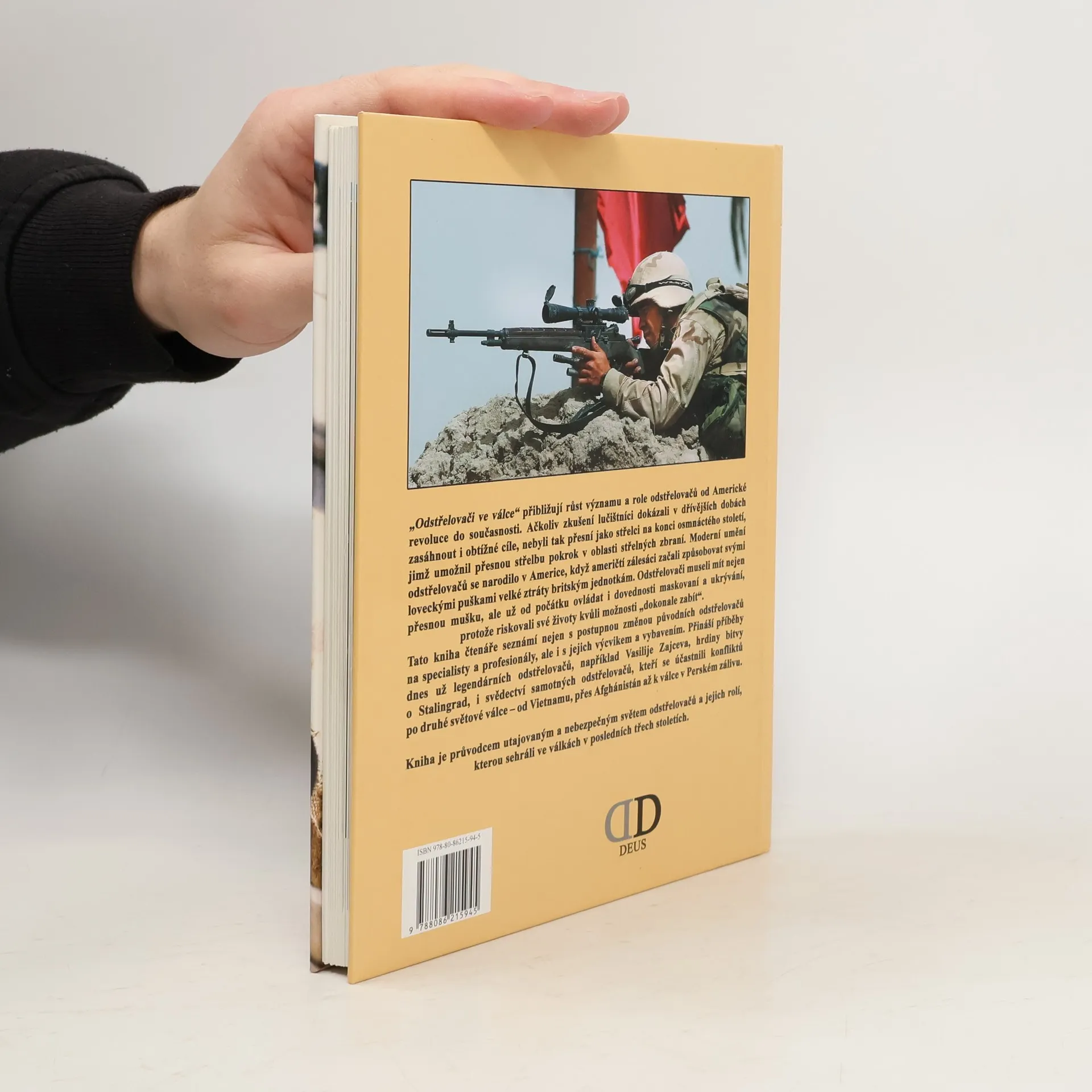 Podtitul: od Americké revoluce do současnosti Kniha „Odstřelovači ve válce“ přibližuje růst významu a role odstřelovačů od Americké revoluce až do současnosti. Tato kniha čtenáře seznámí nejen s postupnou změnou původních odstřelovačů na specialisty a profesionály, ale i s jejich výcvikem a výbavou. Přináší příběhy dnes už legendárních odstřelovačů, například Vasilije Zajceva, hrdiny bitvy o Stalingrad, i svědectví samotných odstřelovačů, kteří se účastnili konfliktů po druhé světové válce – od Vietnamu, přes Afghánistán až k válce v Iráku.