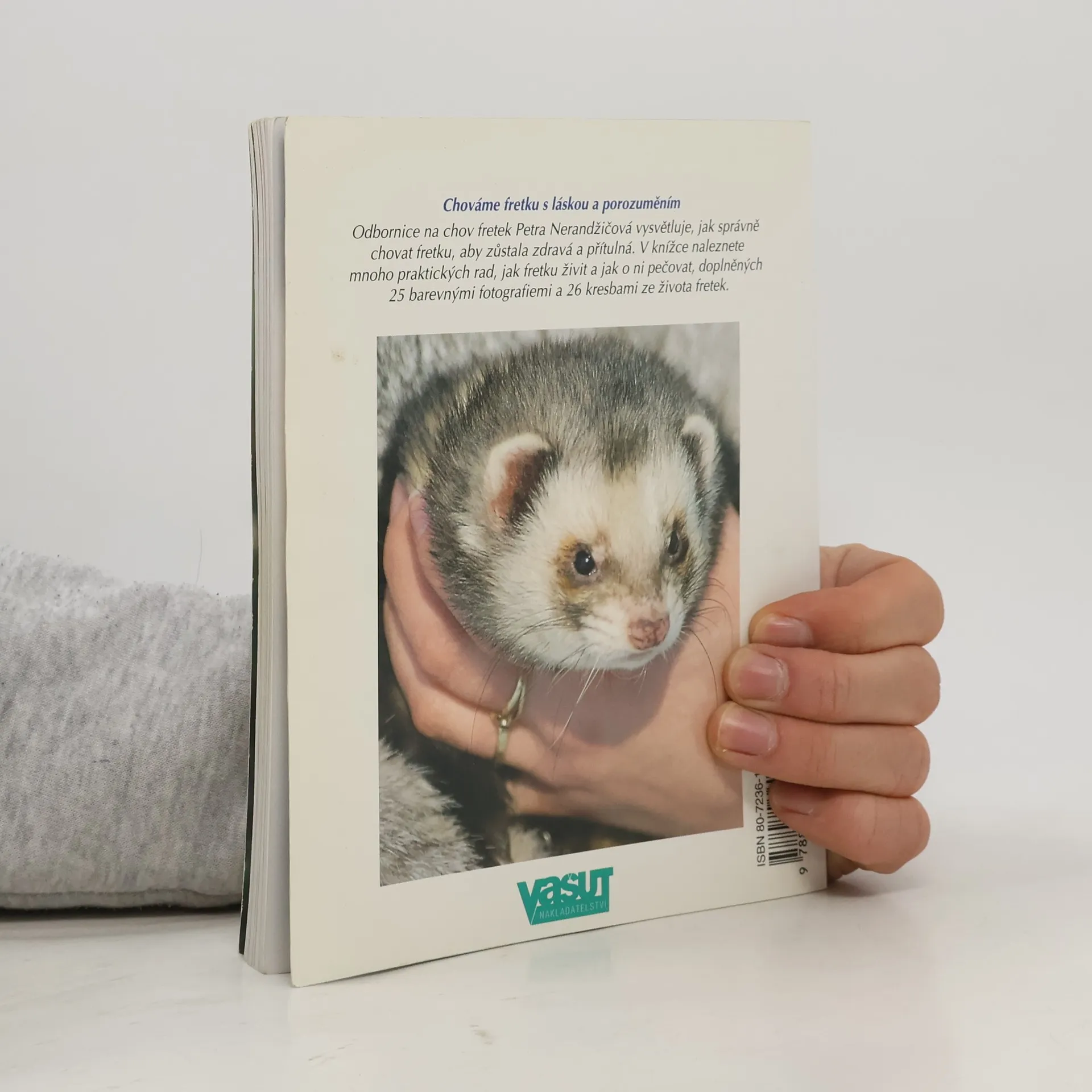 Autorka vysvětluje, jak správně chovat fretku, aby zůstala zdravá a přítulná. Text je psán srozumitelnou formou a je doplněn množstvím barevných fotografií a ilustrací. Od tchoře k fretce. Výběr jedince. Co všechno fretka potřebuje. Základní pravidla chovu. Správná výživa. Nemoci. Freťata. Naučte se fretce porozumět.