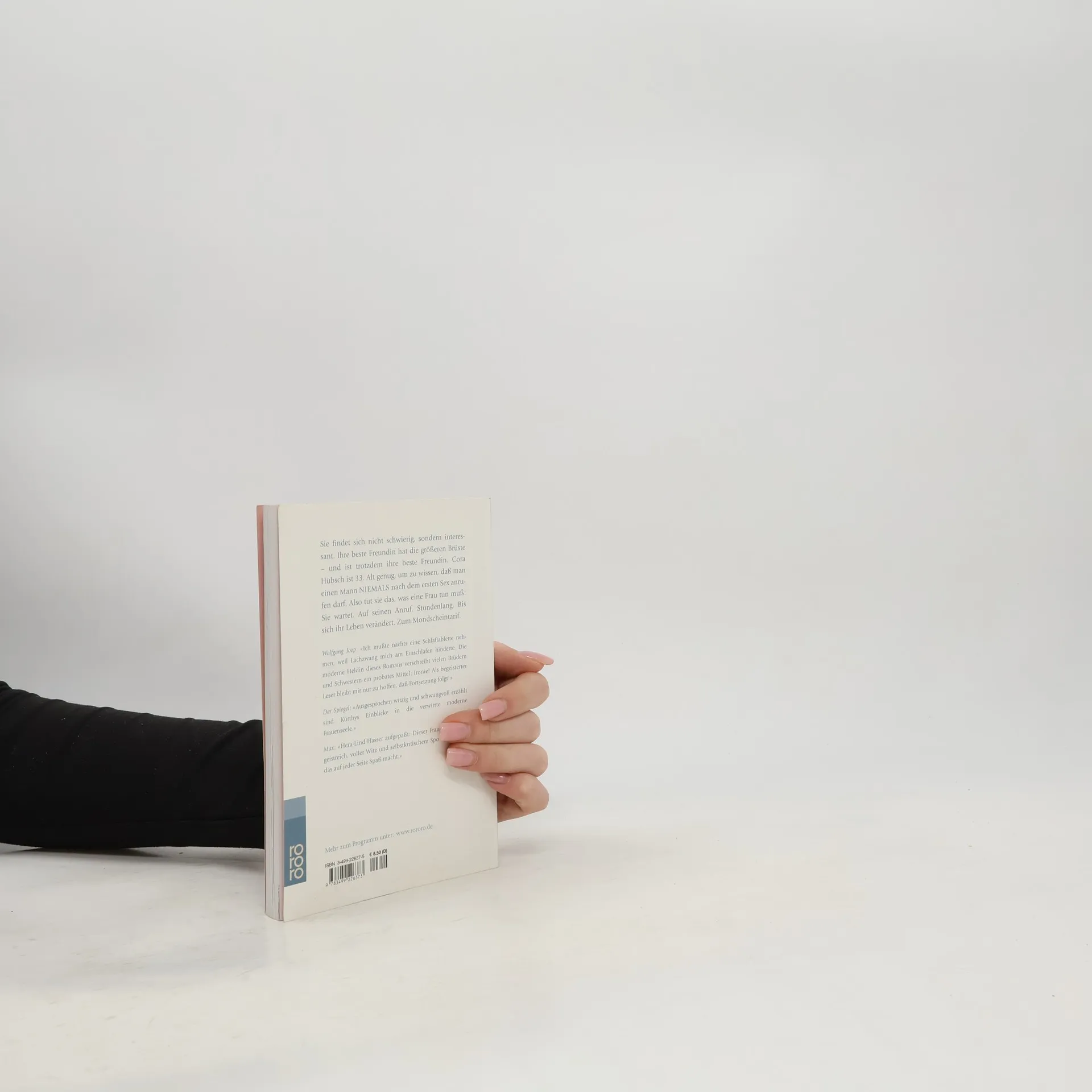 Sie findet sich nicht schwierig, sondern interessant. Ihre beste Freundin hat die größeren Brüste – und ist trotzdem ihre beste Freundin. Cora Hübsch ist 33. Alt genug, um zu wissen, dass man einen Mann niemals nach dem ersten Sex anrufen darf. Also tut sie das, was eine Frau tun muß: Sie wartet. Auf seinen Anruf. Stundenlang. Bis sich ihr Leben verändert. Zum Mondscheintarif.Wolfgang Joop: «Ich musste nachts eine Schlaftablette nehmen, weil Lachzwang mich am Einschlafen hinderte. Die moderne Heldin dieses Romans verschreibt vielen Brüdern und Schwestern ein probates Mittel: Ironie! Als begeisterter Leser bleibt mir nur zu hoffen, dass Fortsetzung folgt!»Der Spiegel: «Ausgesprochen witzig und schwungvoll erzählt sind Kürthys Einblicke in die verwirrte moderne Frauenseele.»Max: «Hera-Lind-Hasser aufgepaßt: Dieser Frauenroman ist geistreich, voller Witz und selbstkritischem Spott. Ein Buch, das auf jeder Seite Spaß macht.»
