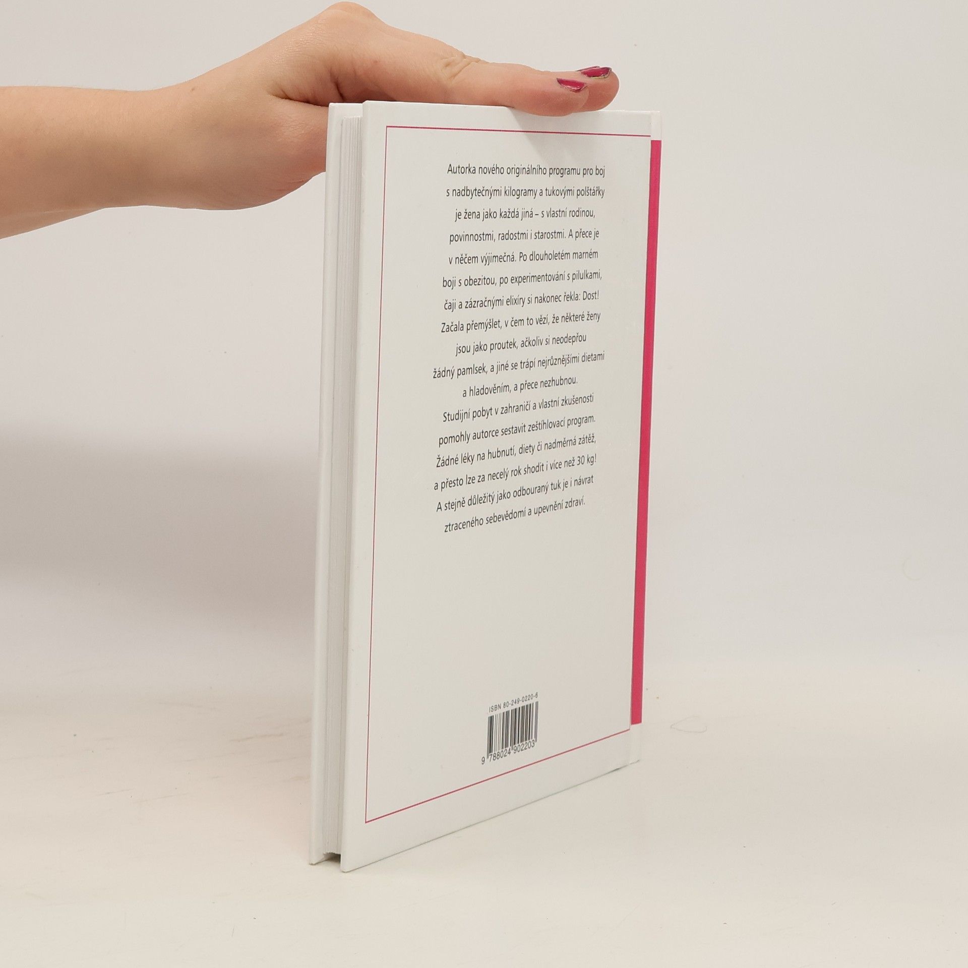 Hubneme v pohodě, bez tabletek, diet a namáhavých cviků Autorka nového originálního programu pro boj s nadbytečnými kilogramy a tukovými polštářky je žena jako každá jiná - s rodinou, povinnostmi, radostmi i starostmi. Po dlouholetém marném boji s obezitou, po experimentech s pilulkami, čaji a zázračnými elixíry si řekla: Dost! a začala přemýšlet, v čem to vězí, že některé ženy jsou jako proutek, ačkoliv si neodepřou žádný pamlsek, a jiné se trápí dietami, a přece nezhubnou. Studijní pobyt v zahraničí i vlastní zkušenosti jí pomohly sestavit zeštíhlovací program. Žádné léky na hubnutí, diety či nadměrná zátěž, a přesto lze za necelý rok shodit i více než 30 kg! Stejně důležitý jako odbouraný tuk je i návrat ztraceného sebevědomí a upevnění zdraví.... celý text