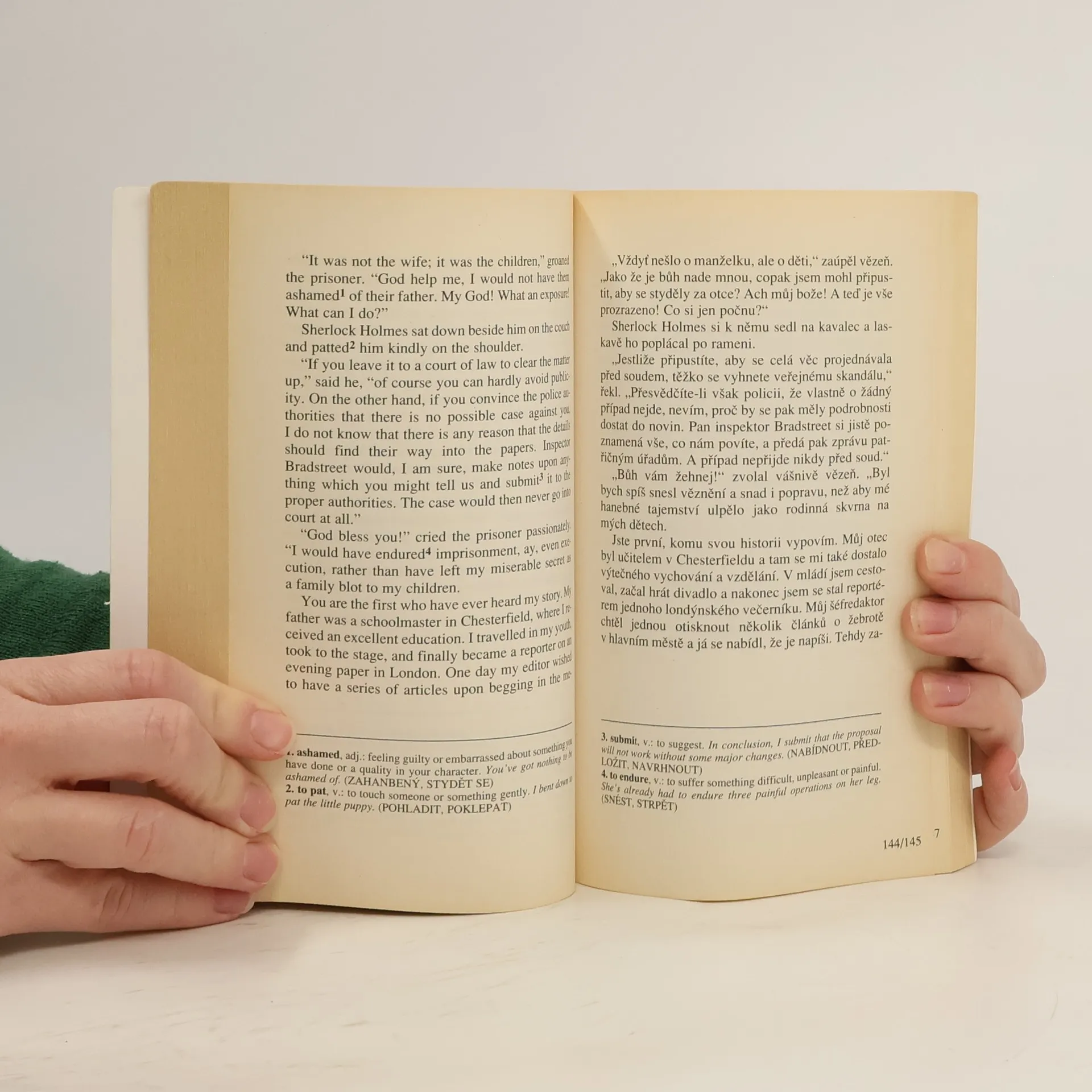 Dvojjazyčné vydání s komentářem obsahuje tři klasické případy detektiva z Baker Street: Pět pomerančových jadérek, Ohyzdný žebrák, Modrá karbunkule. Nekrácený text s komentářem. Dvojjazyčné vydání: cz-eng