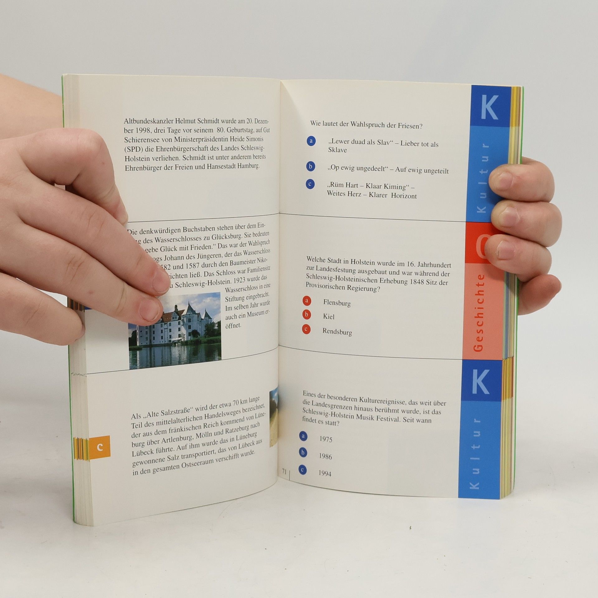 Die Schleswig-Holsteiner lieben ihr Land und alles, was damit zu tun hat. Beweis dafür ist das stete Interesse, das sie den zahlreichen Veröffentlichungen zu landeskundlichen Themen entgegenbringen, ebenso wie ihre Reaktionen auf typisch schleswig-holsteinische Meldungen im Hörfunk. Quizsendungen erfreuen sich zunehmender Beliebtheit und ein bundesweit angelegter IQ-Test in einer Unterhaltungssendung ermittelte zudem, dass aus Schleswig-Holstein die schlauesten Menschen kommen. Was liegt da näher, als mit einem Quizbuch einen unbeschwerten Ansatz zu schaffen, Landeskunde zu vermitteln oder neugierig darauf zu machen? Die bunt zusammengestellten Fragen aus den Bereichen Geschichte, Kultur, Wirtschaft, Natur und Allgemeines laden ein zu einem unterhaltsamen und zugleich lehrreichen Spaziergang durch dieses Land, bei dem Sie Bekanntes wiedertreffen werden und Neues entdecken können.