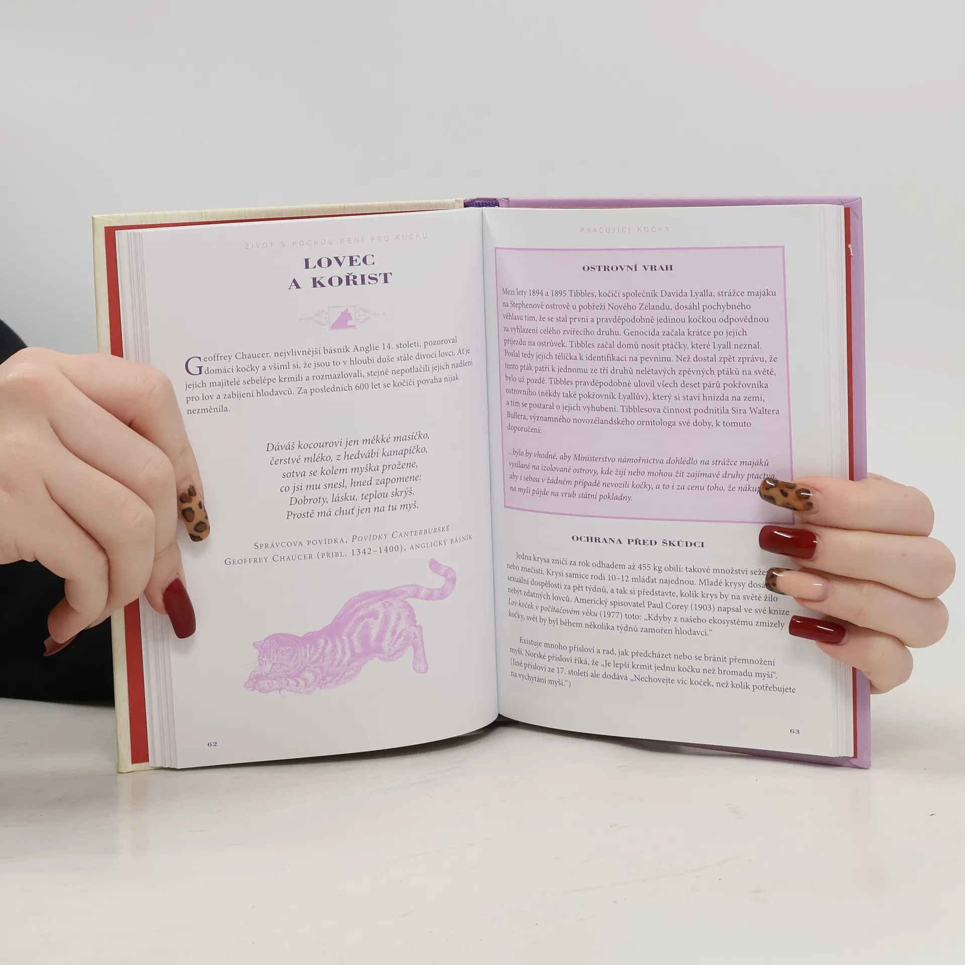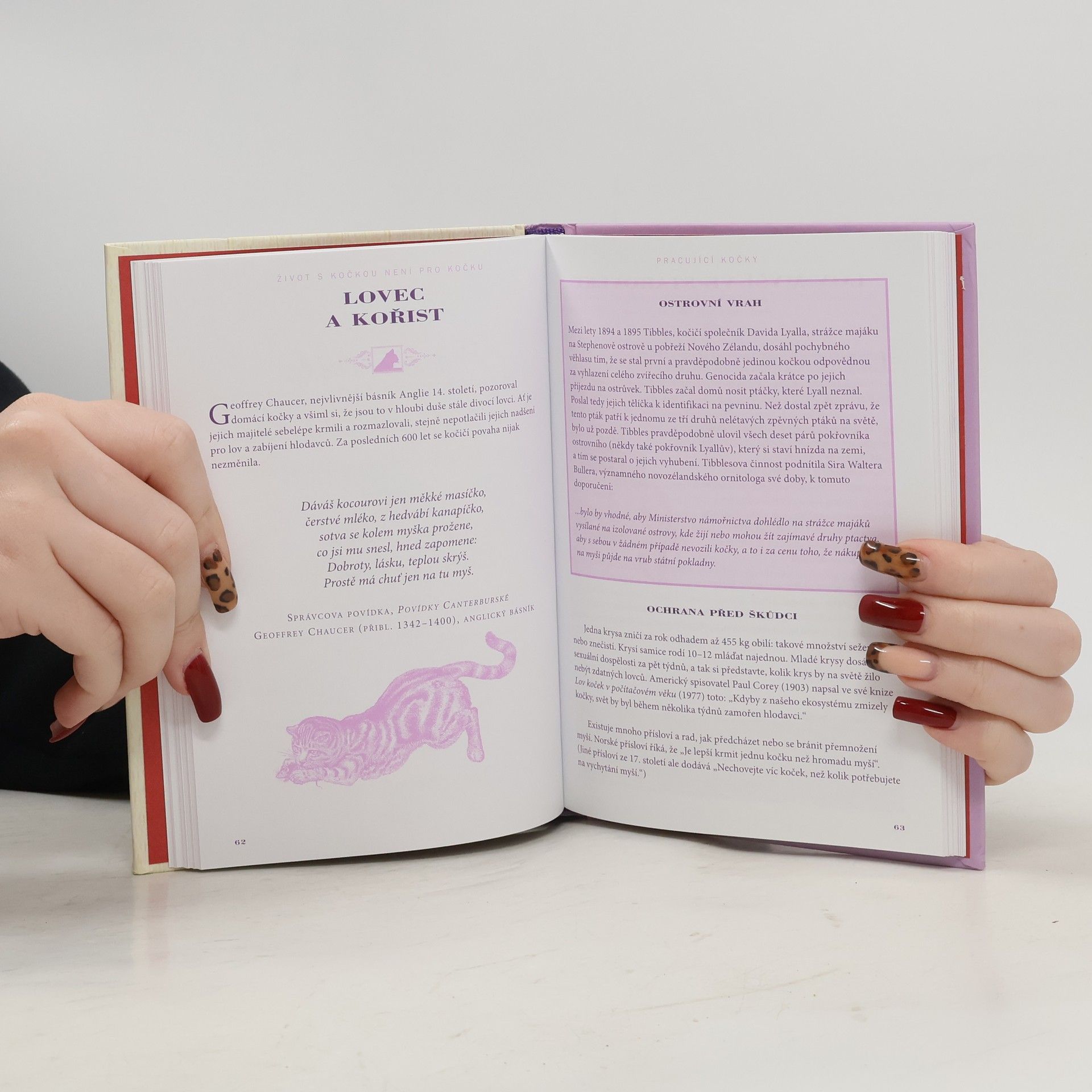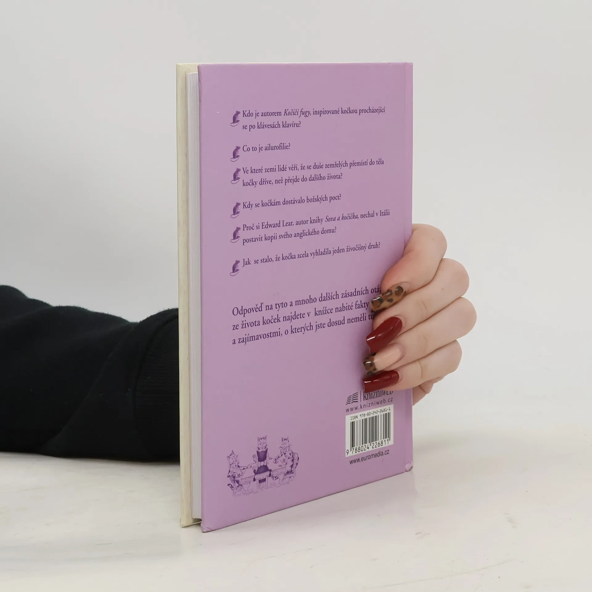 Podtitul: Kaleidoskop kočičích kuriozit. Dárková knížka, kterou ocení každý milovník koček. Hravou a zábavnou formou jsou v ní shrnuty vážné i nevážné informace snad o všem, co by člověk mohl chtít o těchto okouzlujících domácích šelmách vědět. Kromě základních údajů o rasách, původu, anatomii, chovu a péči o kočky objevíte i zajímavé kuriozity, které jinde nenajdete: např. informace o slavných milovnících koček, včetně Elizabeth Taylorové či bratří Čapků, a jejich domácích mazlíčcích. Jsou tu uvedeny také fiktivní číči – literární či filmoví hrdinové, od vynalézavého Kocoura v botách přes dobráckého českého Mikeše a cynického Garfielda po kočku Midnight z filmu Catwoman a Spota ze Star Treku. Nechybí ani kočky, které lze vidět na obrazech slavných malířů, a mýty, legendy a pověry o kočkách, ať již ze starověkého Egypta, Číny či Siamu, nebo ty, které se udržely v Evropě dodnes. Zvídavého čtenáře nepochybně zaujmou i přísloví, rčení či pranostiky o kočkách, kocourech a koťatech, posbírané po celém světě, a podivuhodné či neobvyklé skutečné příběhy, v nichž hrají kočky hlavní roli. Půvabně zpracovaná publikace zaujme, pobaví i potěší.