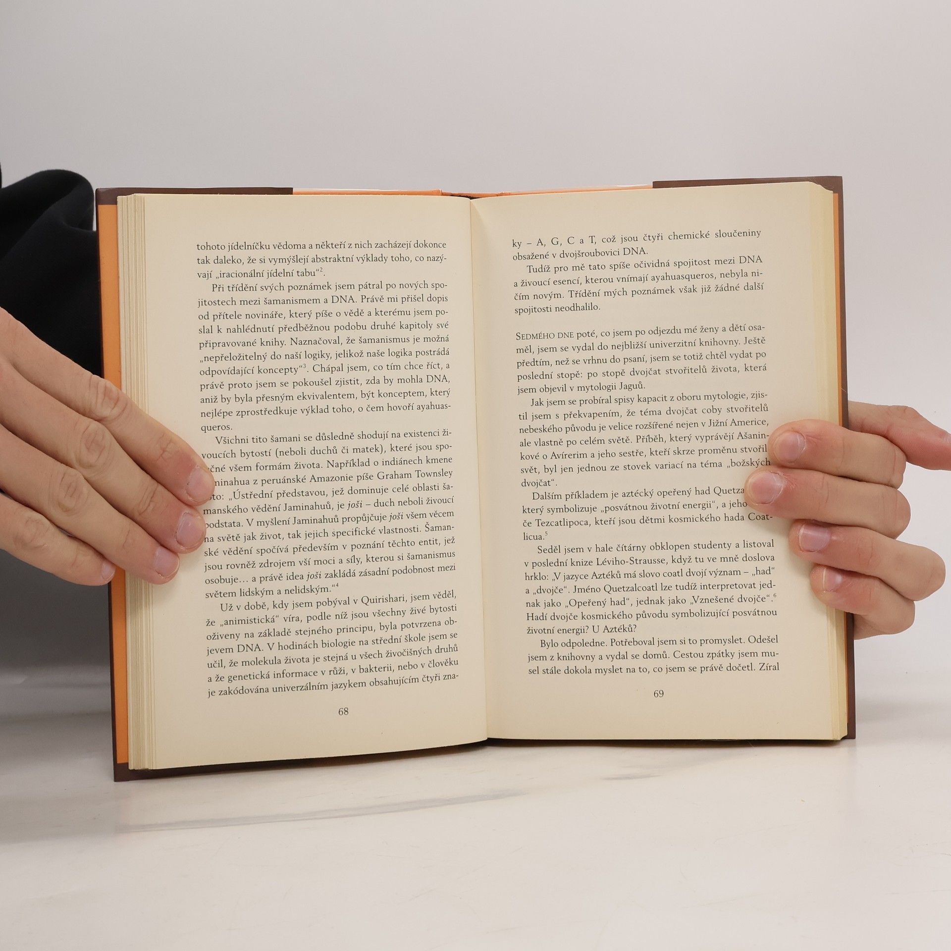 V této knize Jeremy Narby přináší nový pohled na vědění a moudrost původních přírodních národů Amazonie. Provádí nás starobylým šamanským věděním, které amazonští indiáni získávají prostřednictvím halucinogenních rostlin. Narby nás zasvěcuje do tajů DNA, jedinečné chemické látky, která je základem existence všech živých organismů na Zemi. Autor zkoumá „indiánské vědění“ v širokém filozofickém a kosmologickém rámci, odhalujíc souvislosti mezi šamanským věděním a moderní biologií. Čerpá z bohatých antropologických a biologických zdrojů a předkládá je v novém světle. Narbyho hypotéza je odvážná, avšak pečlivě podložená argumenty a poznatky z různých oborů, prezentovaná formou fascinujícího vyprávění. Dlouhá léta se zabýval záhadou rostlinné komunikace související s prožitky vyvolanými ayahuaskou. Svá odhalení dokládá poznatky moderní molekulární biologie. Při ayahuaskových vizích se šamanům často objevují obrazy hadů či provazových žebříků, které Narby spojuje s ayahuaskovou liánou a dvojšroubovicí DNA. Čtenář tak může sdílet úžas nad podobností pohledu amazonských šamanů s moderním vědeckým pohledem a rozjímat nad tajemstvím původu života.