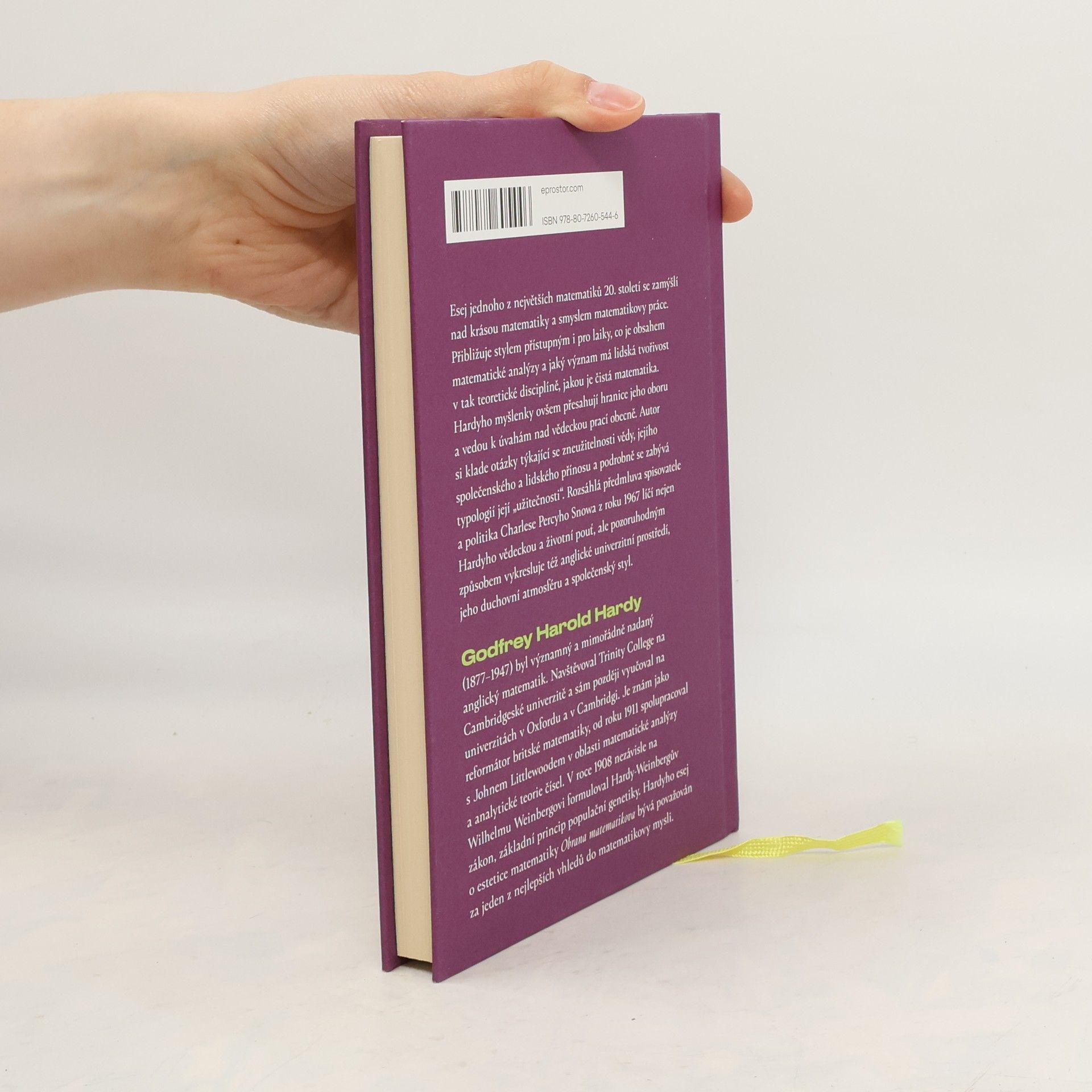 Esej jednoho z největších matematiků tohoto století se zamýšlí nad krásou matematiky a smyslem matematikovy práce. Přibližuje stylem přístupným i pro laiky, co je obsahem matematické analýzy a jaký význam má lidská tvořivost v tak teoretické disciplíně, jakou je čistá matematika. Hardyho myšlenky a reflexe vlastního úsilí ovšem přesahují hranice jeho oboru a vedou k úvahám nad vědeckou činností obecně. Autor si klade otázky týkající se zneužitelnosti vědy, jejího společenského a lidského přínosu, podrobně se zabývá typologií její „užitečnosti“. Čtenář jistě ocení rozsáhlou předmluvu Hardyho přítele, spisovatele a politika Charlese P. Snowa z roku 1967, jenž v ní podává plastický obraz osobnosti tohoto věhlasného matematika. Líčí nejen Hardyho vědeckou i životní pouť – včetně například jeho vášnivé záliby v kriketu –, ale pozoruhodným způsobem vykresluje také anglické univerzitní prostředí, jeho duchovní atmosféru a společenský styl.