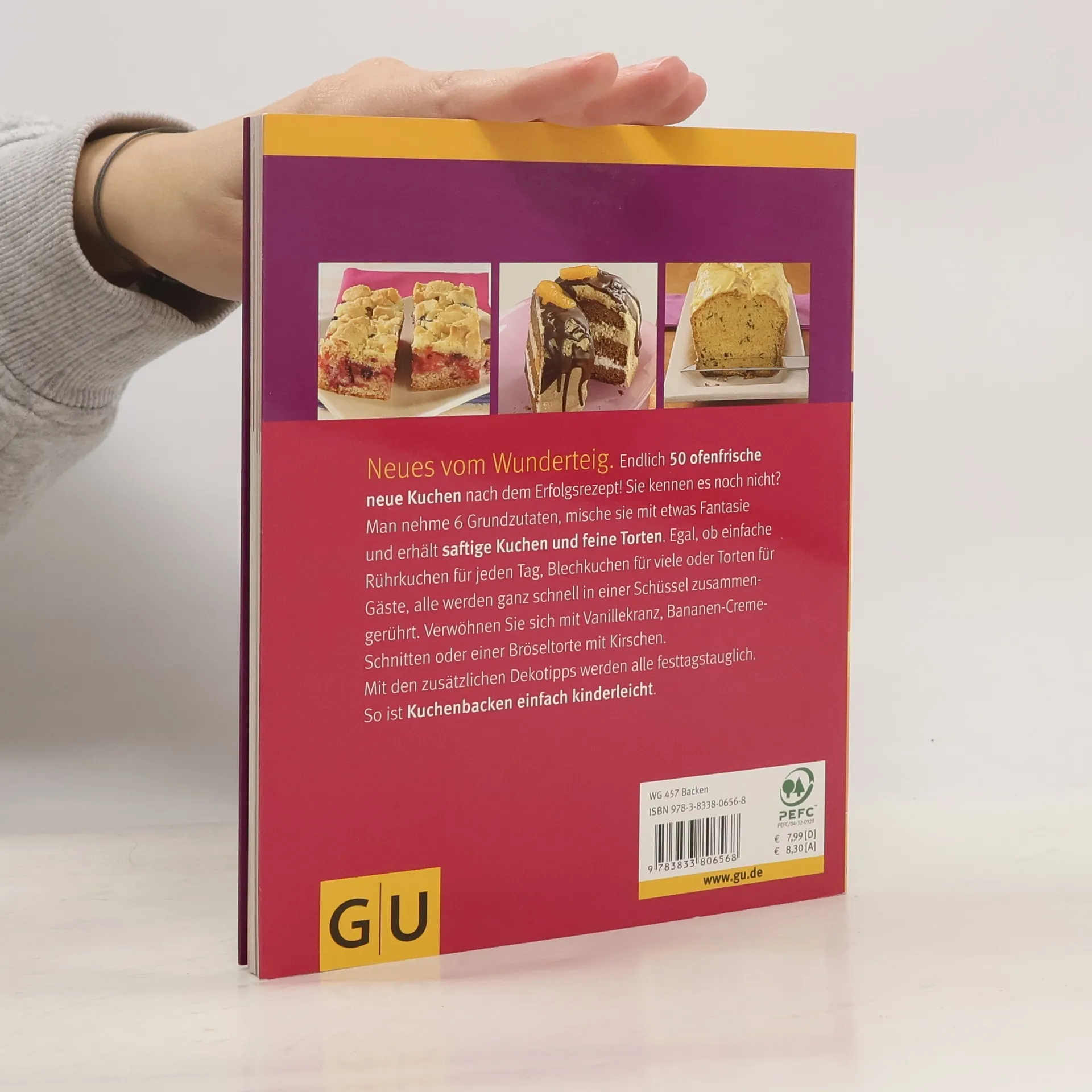 Neues vom Wunderteig. Endlich wieder 50 ofenfrische neue Kuchen nach dem Erfolgsrezept! Sie kennen es noch nicht? Man nehme 6 Grundzutaten, mische sie mit etwas Fantasie und erhält saftige Kuchen und feine Torten. Egal, ob einfache Rührkuchen für jeden Tag, Blechkuchen für viele oder Torten für Gäste, alle werden ganz schnell in einer Schüssel zusammengerührt. Verwöhnen Sie sich mit Vanillekranz, Bananen-Creme-Schnitten oder einer Bröseltorte mit Kirschen. Und mit den zusätzlichen Dekotipps werden alle festtagstauglich. Kuchenbacken einfach kinderleicht.