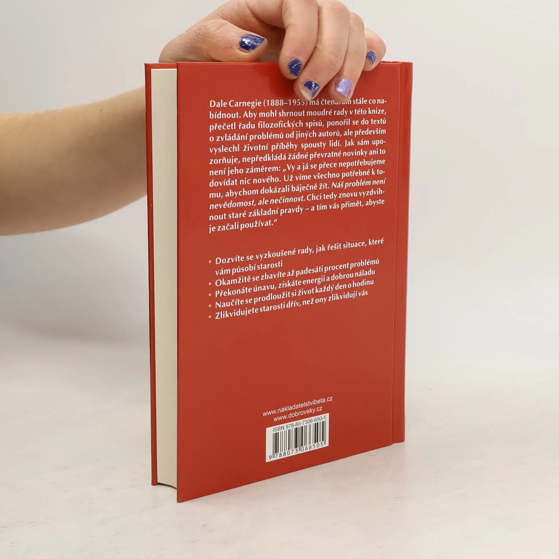 Dale Carnegie, slavný učitel osobního rozvoje z první poloviny dvacátého století, má čtenářům stále co nabídnout. Aby mohl shrnout moudré rady v této knize, přečetl řadu filozofických spisů, ponořil se do textů o zvládání problémů od jiných autorů, ale především vyslechl životní příběhy spousty lidí. Jak sám upozorňuje, nepředkládá žádné převratné novinky ani to není jeho záměrem: „Vy a já se přece nepotřebujeme dovídat nic nového. Už víme všechno potřebné k tomu, abychom dokázali báječně žít. Náš problém není nevědomost, ale nečinnost. Chci tedy znovu vyzdvihnout staré základní pravdy – a tím vás přimět, abyste je začali používat.“