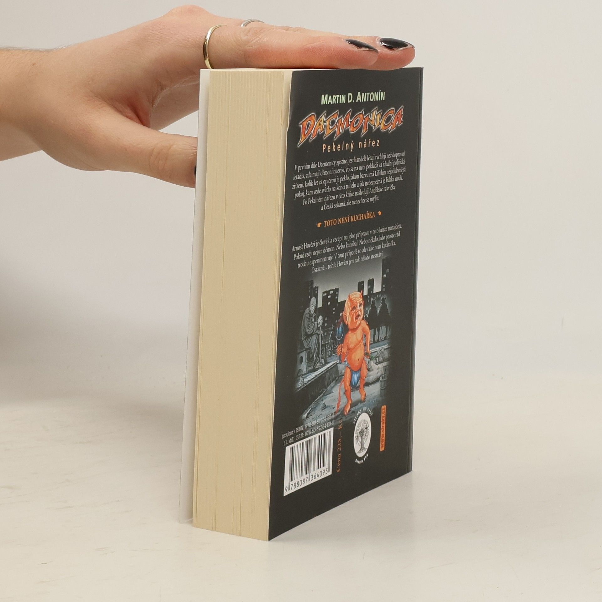 V prvním díle Daemonicy zjistíte, jestli andělé létají rychleji než dopravní letadla, zda mají démoni televizi, co se na nebi pokládá za ideální politické zřízení, kolik let za opicemi je peklo, jakou barvu má Lilithin nejoblíbenější pokoj, kam vede světlo na konci tunelu a jak nebezpečná je lidská nuda. Toto není kuchařka. Arnošt Hovězí je člověk a recept na jeho přípravu v této knize nenajdete. Pokud tedy nejste démon. Nebo kanibal. Nebo někdo, kdo prostě rád trochu experimentuje. V tom případě to ale také není kuchařka. Ostatně... tohle Hovězí jen tak někdo nestráví.