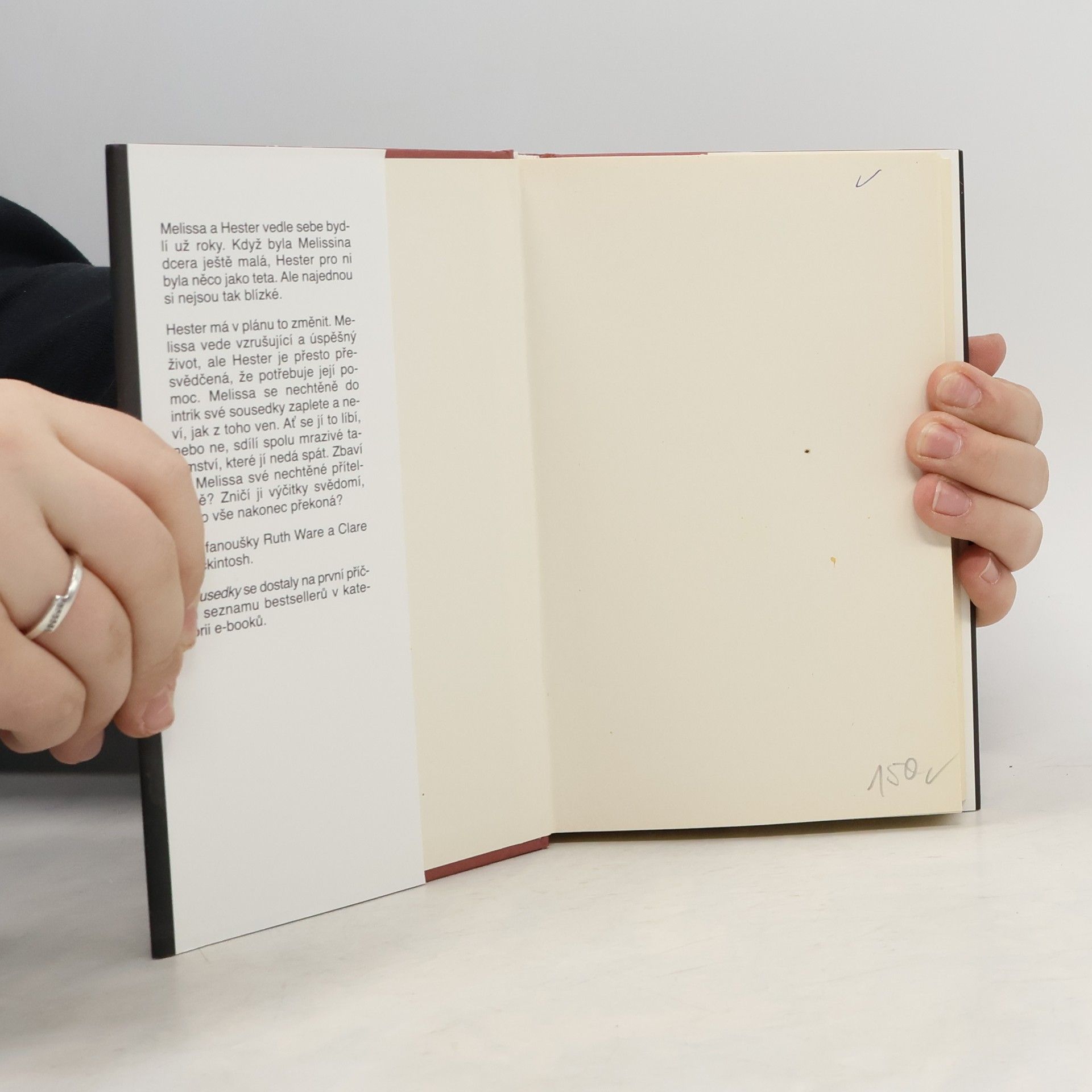 Melissa a Hester jsou léta sousedky. Už si však nejsou blízké jako dřív a to chce Hester změnit. Ale pro ženu jako Melissa, která toho spoustu skrývá, může být takové přátelství velmi nebezpečné. Melissa se nechtěně do intrik své sousedky zaplete a neví, jak z toho ven. Ať se jí to líbí nebo ne, sdílí spolu mrazivé tajemství, které jí nedá spát. Zbaví se Melissa své nechtěné přítelkyně? Zničí ji výčitky svědomí nebo vše nakonec překoná? Pro fanoušky Ruth Ware a Clare Mackintosh.