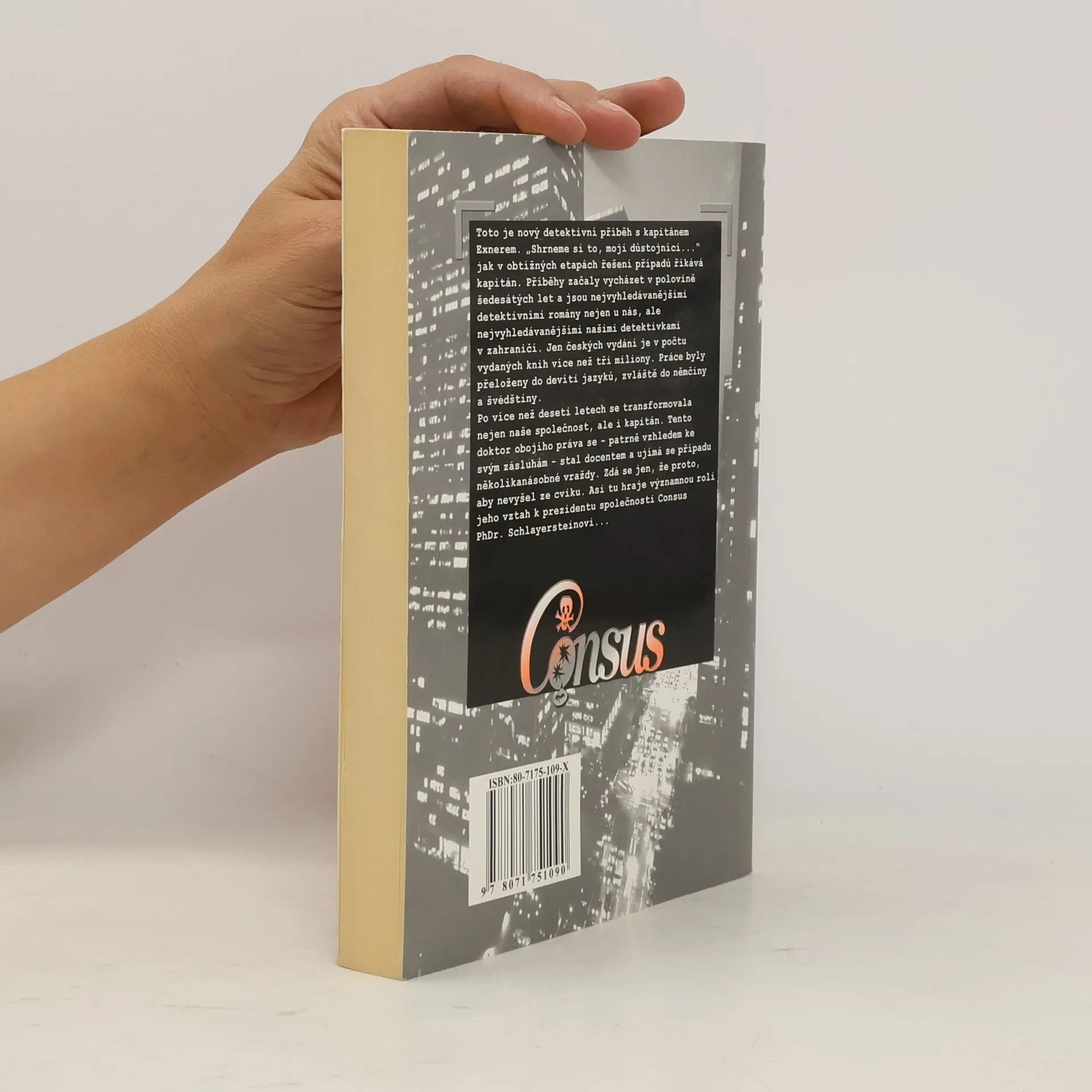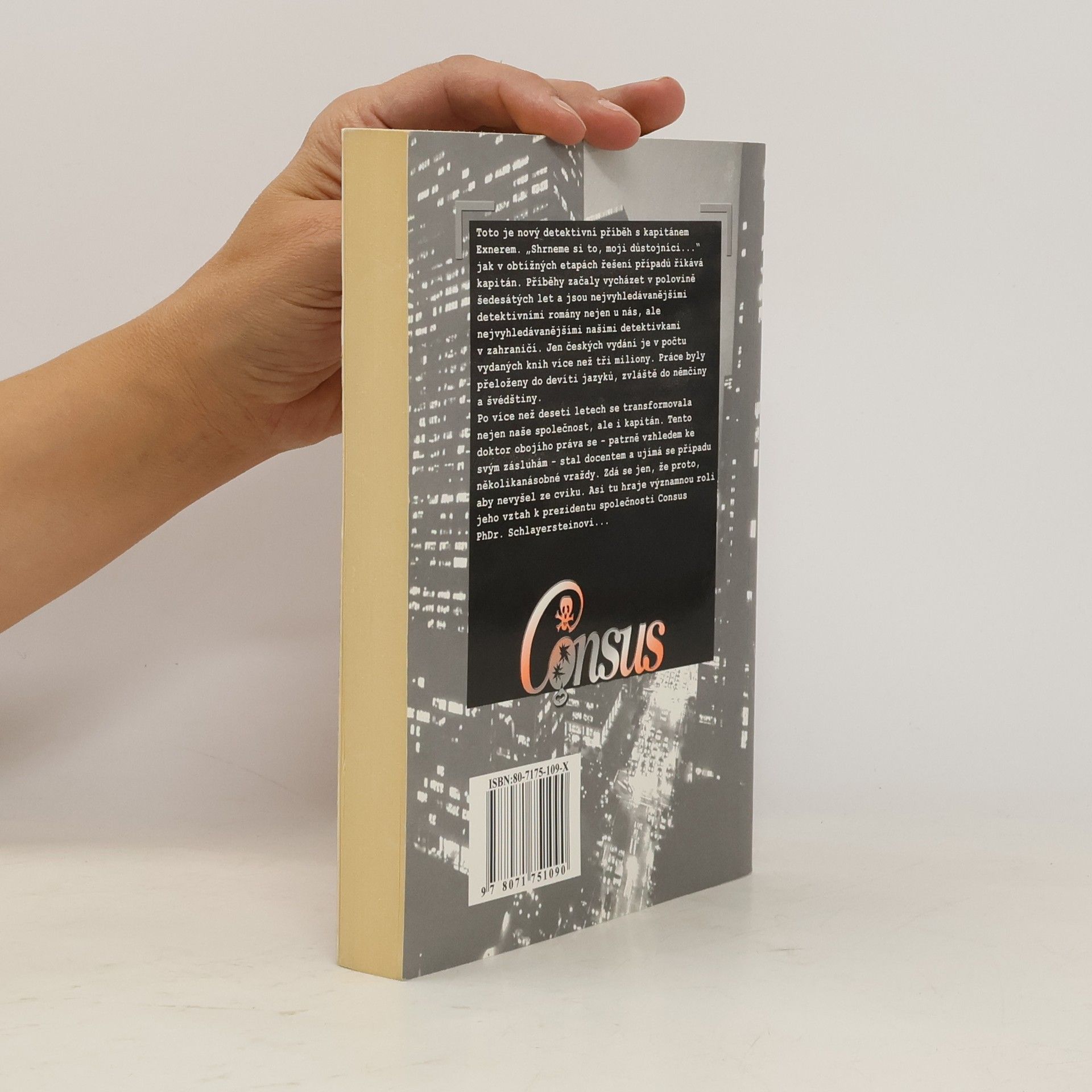 Toto je nový detektivní příběh s kapitánem Exnerem. „Shrneme si to, moji důstojníci…" jak v obtížných etapách řešení případů říkává kapitán. Příběhy začaly vycházet v polovině šedesátých let a jsou nejvyhledávanějšími detektivními romány nejen u nás, ale nejvyhledávanějšími našimi detektivkami v zahraničí. Jen českých vydání je v počtu vydaných knih více než tři miliony. Práce byly přeloženy do devíti jazyků, zvláště do němčiny a švédštiny. Po více než deseti letech se transformovala nejen naše společnost, ale i kapitán. Tento doktor obojího práva se – patrně vzhledem ke svým zásluhám – stal docentem a ujímá se případu několikanásobné vraždy Zdá se jen proto, aby nevyšel ze cviku. Asi tu hraje významnou roli jeho vztah k prezidentu společnosti Consus PhDr. Schlayersteinovi…