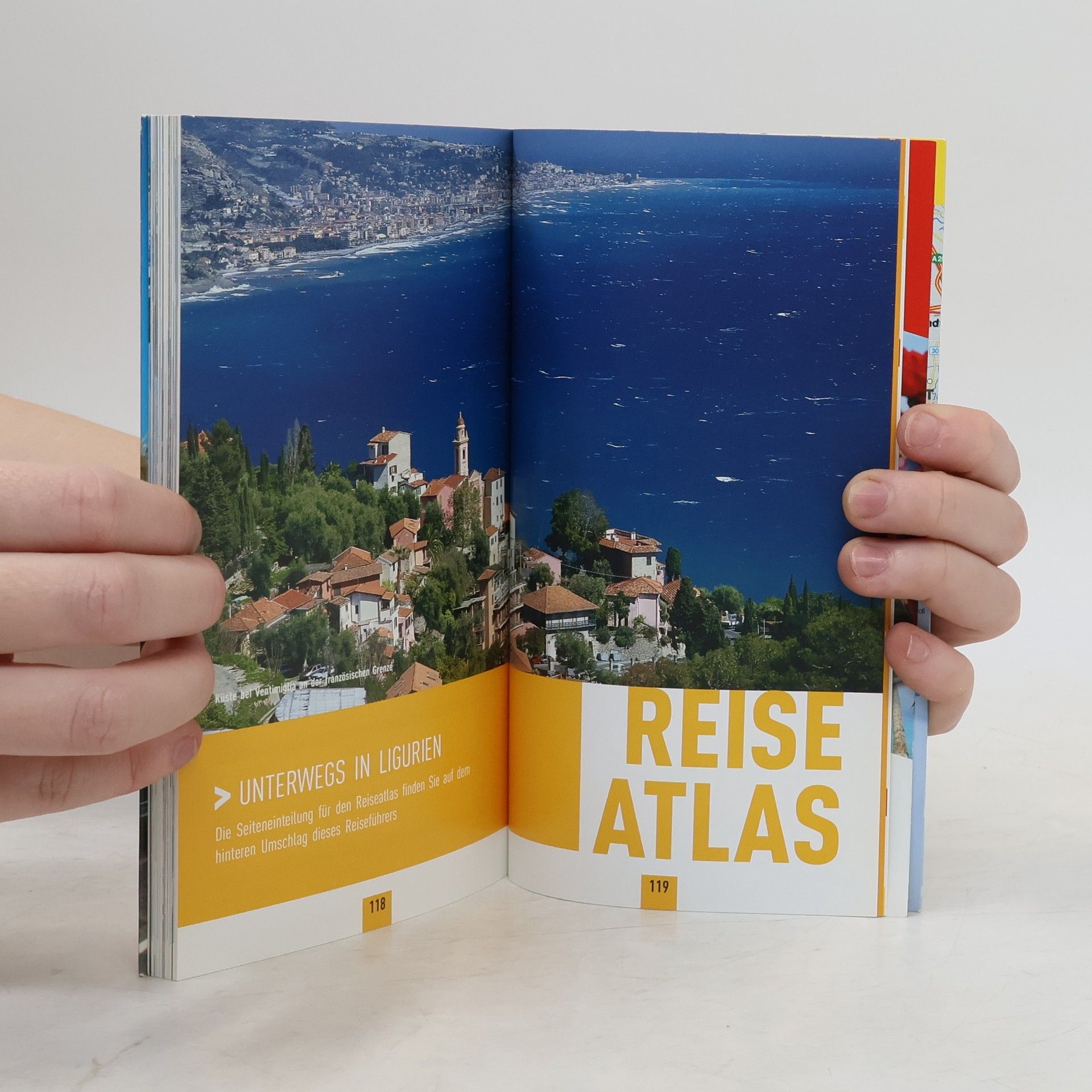 An der Riviera begegnen Sie dem Mediterranen in seiner idyllischen Form, ein Wechselspiel aus Sonnenlicht, duftender Vegetation, zauberhaften Buchten, verwegenen Klippen vor einer Bergwelt voller Wälder, Schluchten, Bergdörfer. Die vertikal aufsteigende Hafenstadt Genua ist eine echte Entdeckung, das glitzernde Licht auf den grauen Dächersn, darunter ein lebendiges Labyrinth, Nur wenige Kilometer weiter sitzt man auf einem Strandmäuerchen vor einem der hübschen bunten Badestädtchen, in der Hand eine frische focaccia und genießt einen jener für Ligurien so typischen sinnlichen Glücksmomente. -- Szene-Guide, 24h Action-pur, Reise-Atlas, Insider-Tipps