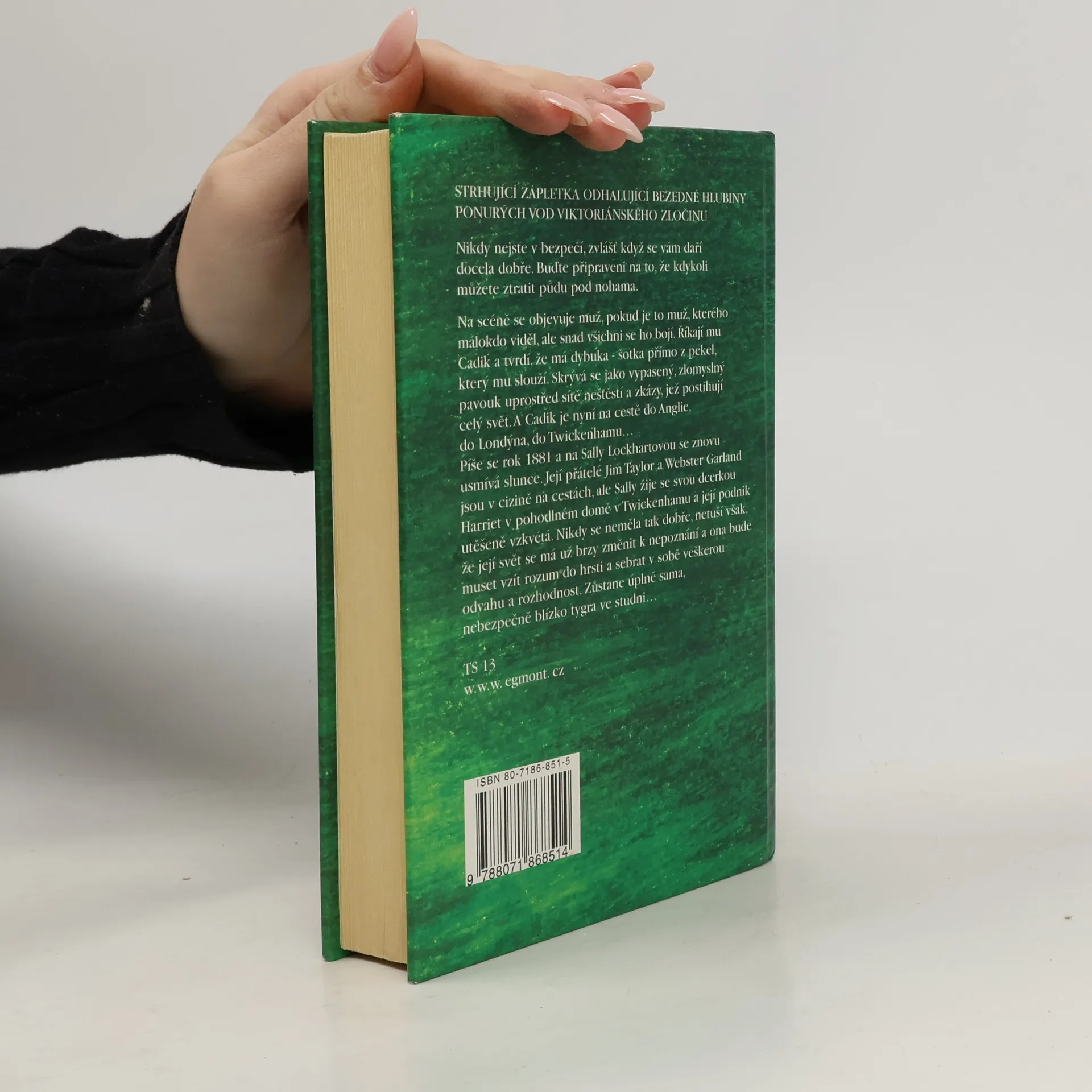 Strhující zápletka odhalující bezedné hlubiny ponurých vod Viktoriánského zločinu… Nikdy nejste v bezpečí, zvlášť když se vám daří docela dobře. Buďte připraveni na to, že kdykoli můžete ztratit půdu pod nohama. Na scéně se objevuje muž, pokud je to muž, kterého málokdo viděl, ale snad všichni se ho bojí. Říkají mu Cadik a tvrdí, že má dybuka – šotka přímo z pekel, který mu slouží. Skrývá se jako vypasený, zlomyslný pavouk uprostřed sítě neštěstí a zkázy, jež postihují celý svět. A Cadik je nyní na cestě do Anglie do Londýna, do Twickenhamu… Píše se rok 1881a na Sally Lockhartovou se znova usmívá slunce. Její přátelé Jim Taylor a Webster Garland jsou v cizině na cestách, ale Sally žije se svou dcerkou Harriet v pohodlném domě v Twickenhamu a její podnik úspěšně vzkvétá. Nikdy se neměla tak dobře, netuší však, že její svět se má už brzy změnit k nepoznání a ona bude muset vzít rozum do hrsti a sebrat v sobě veškerou odvahu a rozhodnost. Zůstane úplně sama, nebezpečně blízko tygra ve studni…