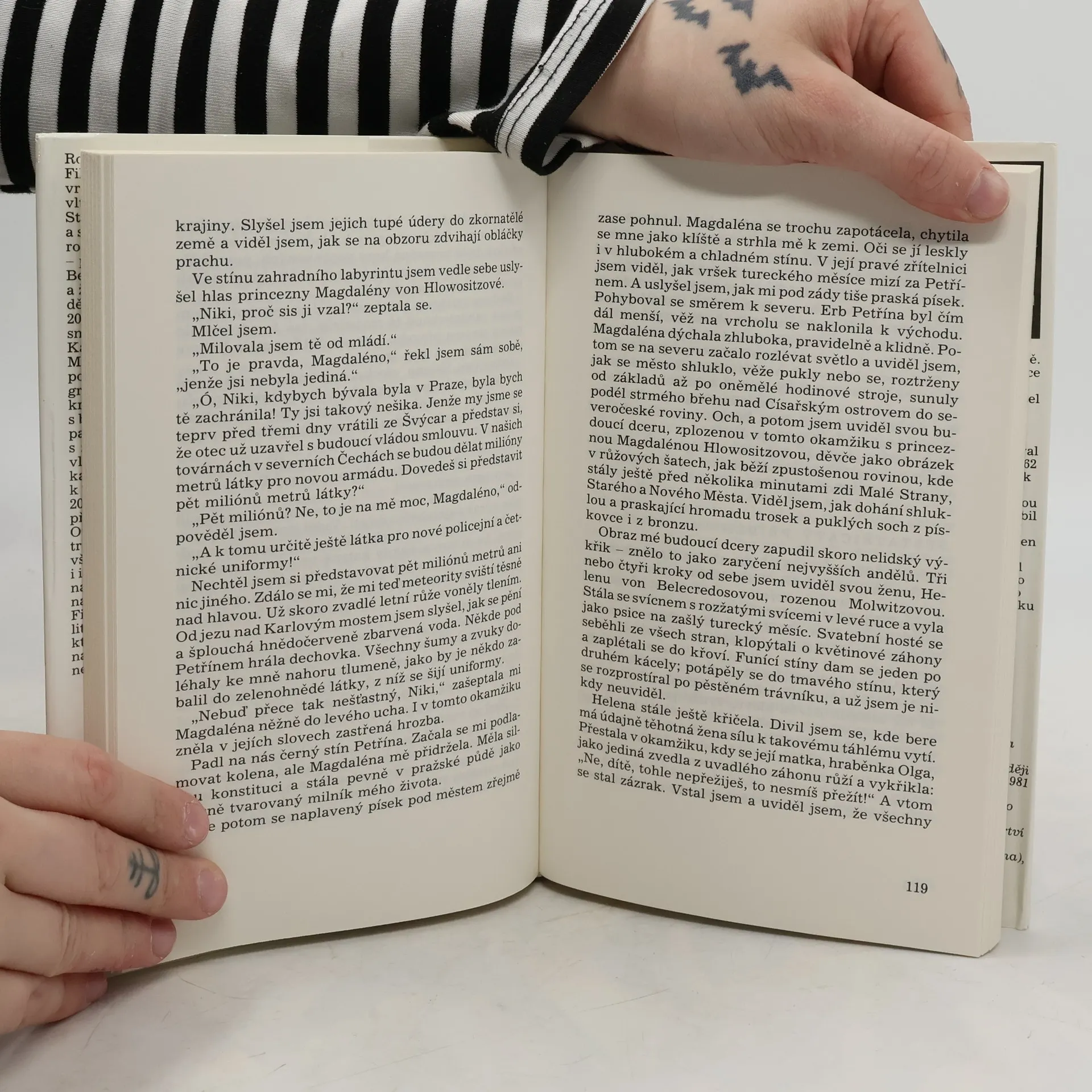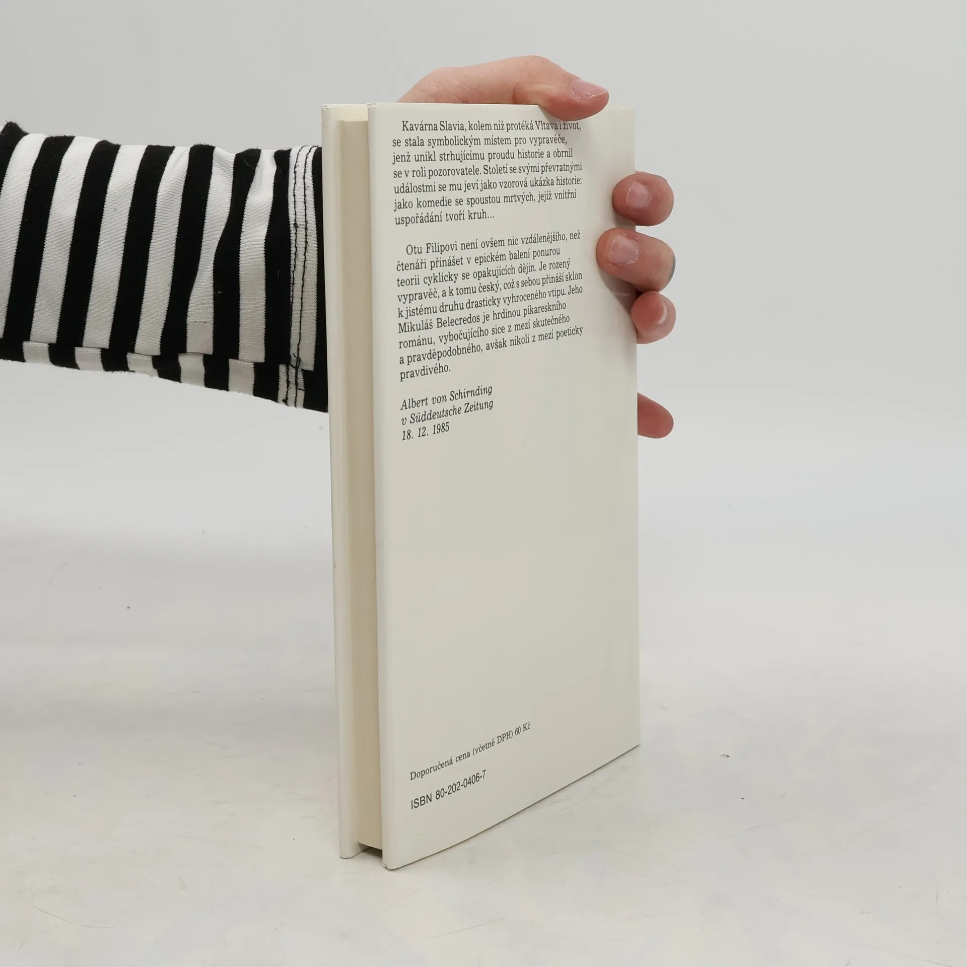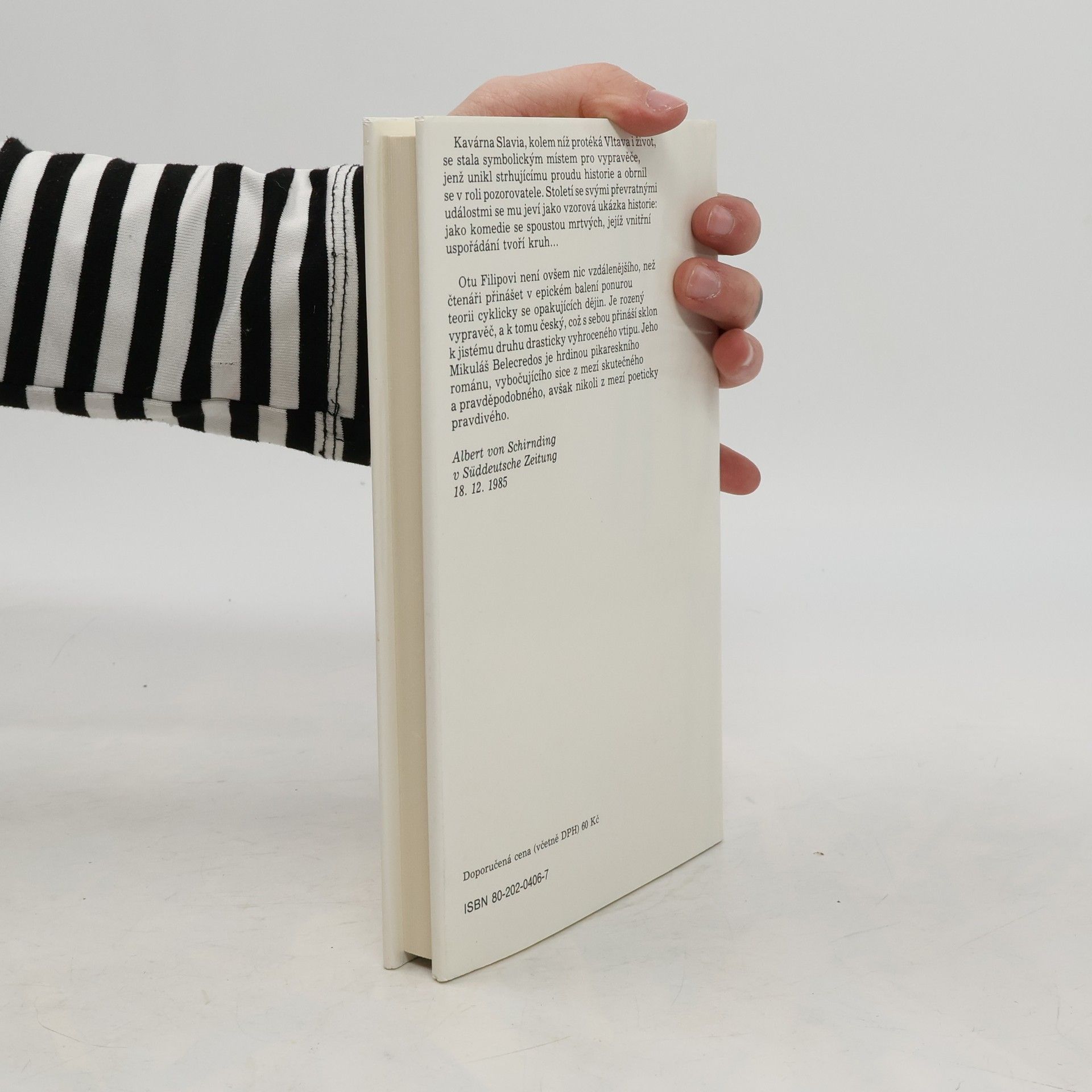 Pikareskní román, který na příbězích potomka údajné pobělohorské šlechty zachycuje běh našich dějin 20. století s tragikomickou nadsázkou. Prostor mezi kavárnou Slávií, Karlovým mostem a Malou Stranou je jevištěm, po němž se v různých maskách pohybuje Mikuláš Belecredos, kavárenský povaleč s bujnou fantazií, který pozoruje dějinné události kolem sebe jedním krátkozrakým a druhým dalekozrakým okem. Jeho vidění historie od návštěvy Lenina v Praze až po okupaci 1968 je groteskně deformované, bláznivé a poetické.