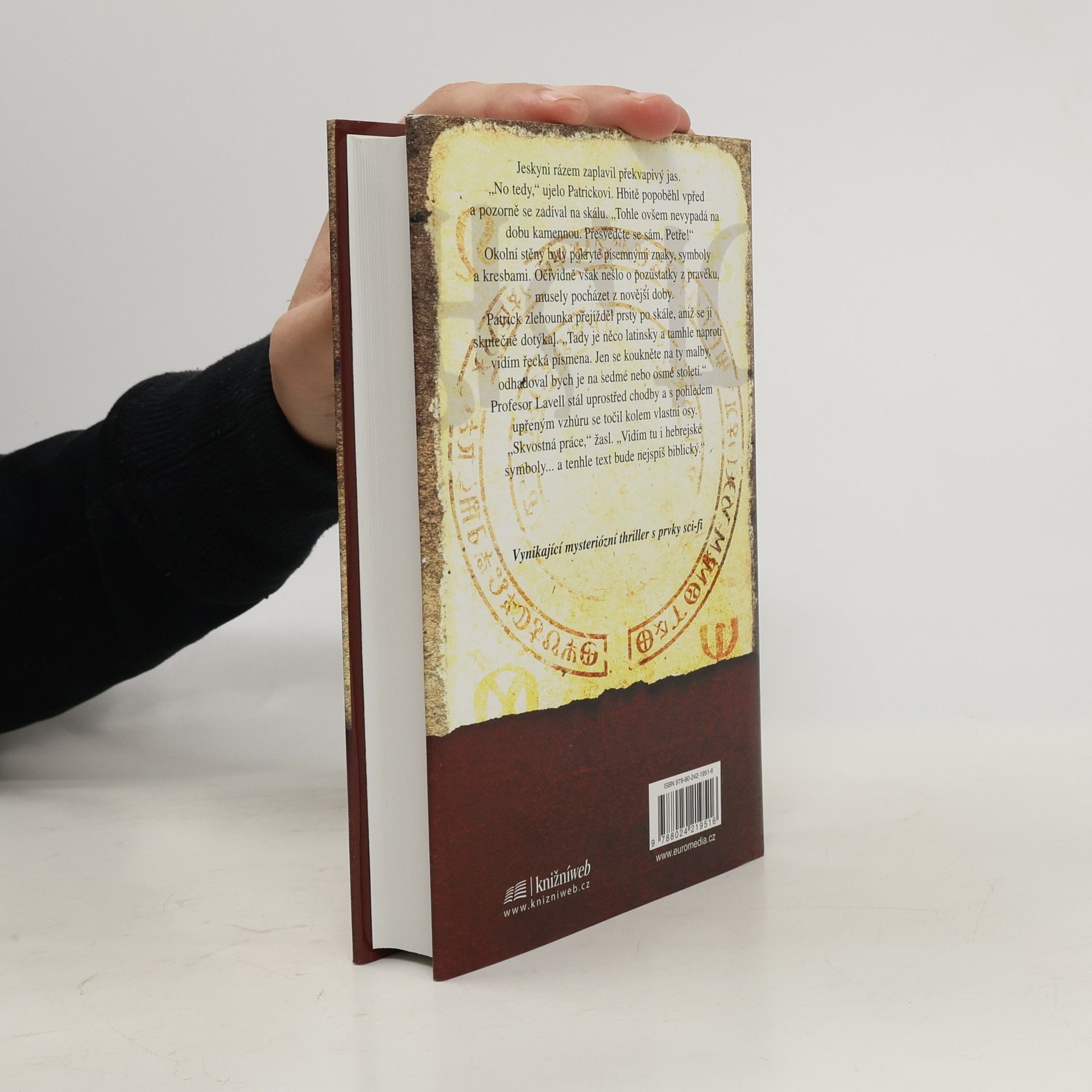 Celá oblast kolem je ihned neprodyšně uzavřena a bedlivě střežena ozbrojenou bezpečnostní službou. Kdo však prozkoumá tajuplné místo, kde jsou skalní stěny popsány záhadnými nápisy, vzkazy z všemožných kultur světa? A kde se v hlubinách vzalo podivné modré záření, jež připravuje lidi o rozum? Za nejvyššího utajení vzniká v Organizaci spojených národů výzkumný projekt a bádáním jsou pověřeni anglický historik Peter Lavell a francouzský inženýr Patrick Nevreux. S rozluštěním složitých textů jim pomáhá mladá německá lingvistka Stefanie Krügerová. Záhy poté, co začnou pátrat, se jim pověsí na paty okultní sekty a tajné společnosti mystiků. Přes veškeré nástrahy a s nasazením vlastního života se trojlístek vědců krok za krokem blíží k vyřešení hádanky. Ale když se jim podaří proniknout až k samému ohnisku poznání, ocitají se ve smrtelném ohrožení… 1.vydání