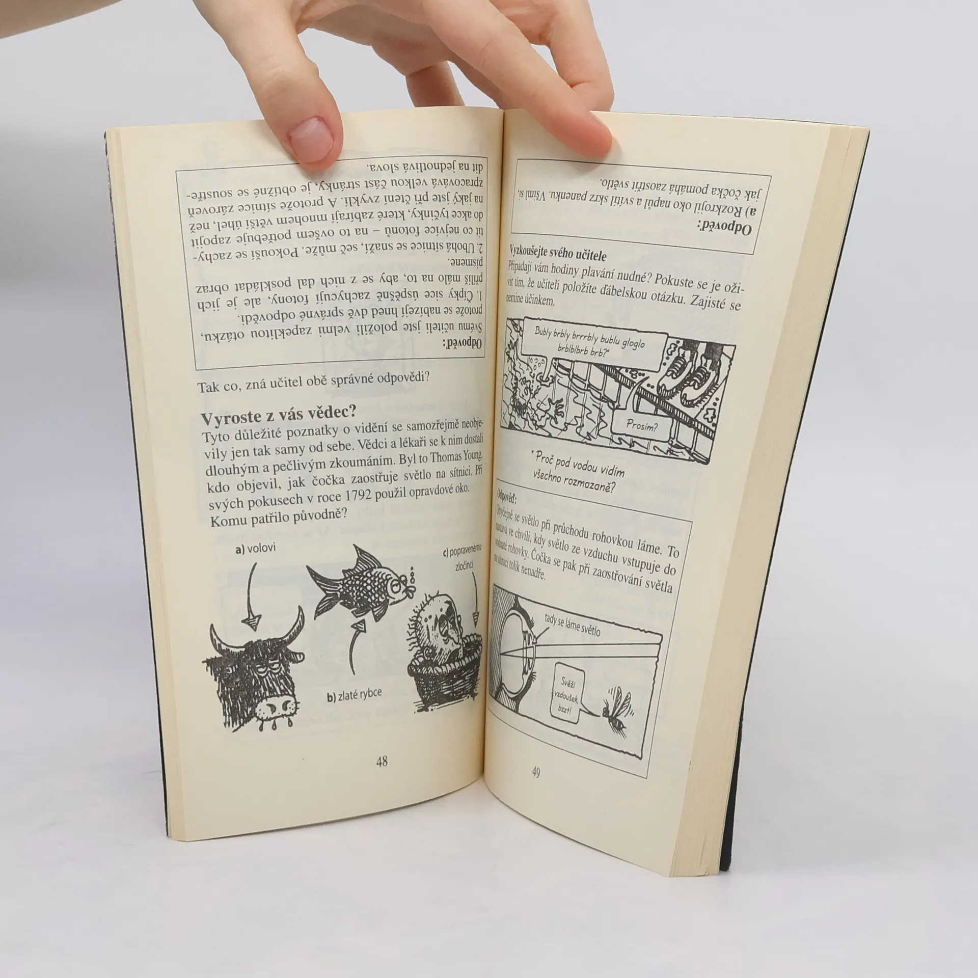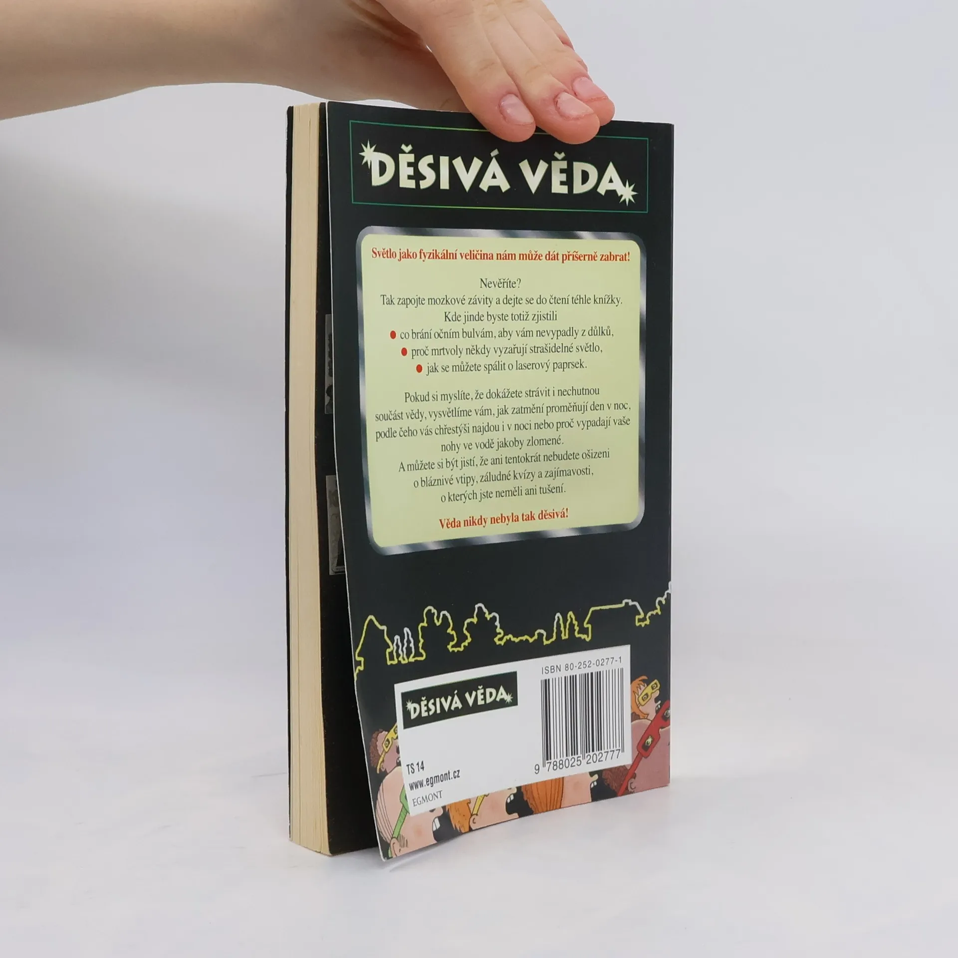 Tak zapojte mozkové závity. Kde jinde byste totiž zjistili, co brání očním bulvám, aby vám nevypadly z důlků, proč mrtvoly někdy vyzařují strašidelné světlo nebo jak se můžete spálit o laserový paprsek. Pokud si myslíte, že dokážete strávit i nechutnou součást vědy, vysvětlíme vám, jak zatmění proměňují den v noc, podle čeho vás chřestýši najdou i v noci nebo proč vypadají vaše nohy ve vodě jakoby zlomené. A můžete si být jistí, že ani tentokrát nebudete ošizeni o bláznivé vtipy, záludné kvízy a zajímavosti, o kterých jste neměli ani tušení. Věda nikdy nebyla tak děsivá!... celý text