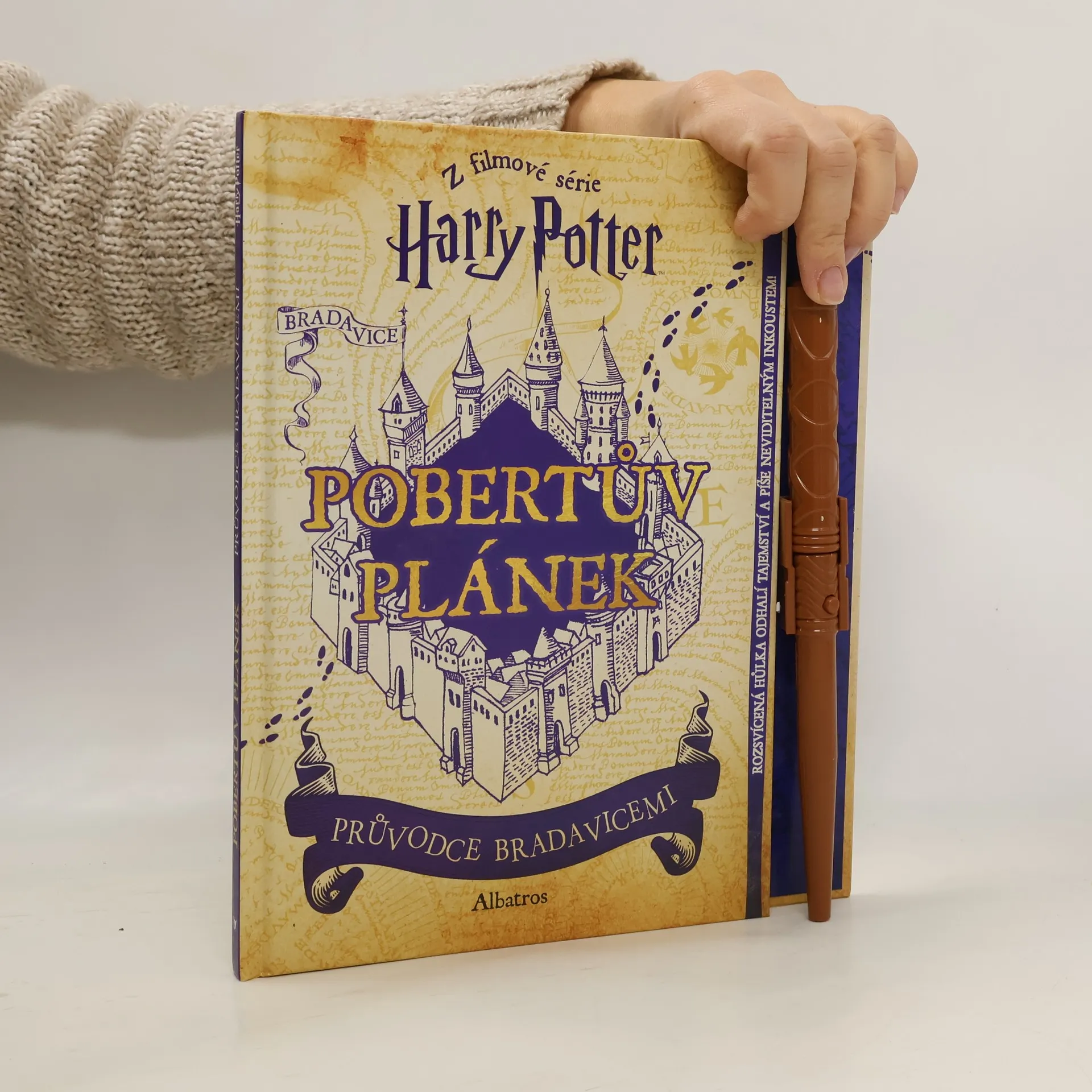 „Slavnostně přísahám, že jsem připraven ke každé špatnosti.“ Po celé roky žasli filmoví fanoušci Harryho Pottera nad Pobertovým plánkem, kouzelnou mapou Bradavic, která se poprvé objevila ve filmu Harry Potter a vězeň z Azkabanu. Teď mohou čtenáři poprvé na vlastní kůži okusit filmová kouzla s tímto krásným průvodcem tajemstvími Bradavic, ve kterém najdou také čtyři rozkládací strany obsahující kousky slavného plánku. Až se fanoušci dosyta pokochají textem, mohou otevřít hůlku, která je zároveň také fix s neviditelným inkoustem a světlo.