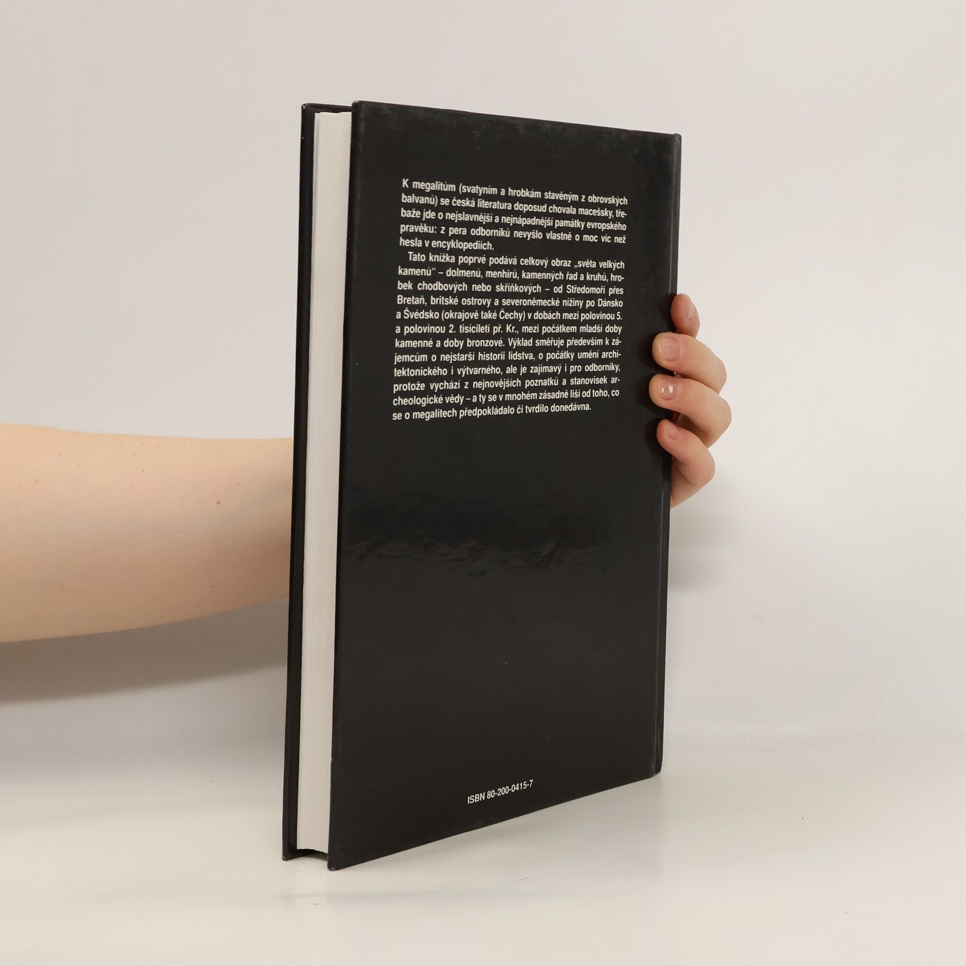 Knížka podává celkový obraz „světa velkých kamenů“ – dolmenů, menhirů, kamenných řad a kruhů, hrobek chodbových nebo skříňkových – od Středomoří přes Bretaň, britské ostrovy a severoněmecké nížiny po Dánsko a Švédsko (okrajově taky Čechy) v dobách mezi polovinou 5. a polovinou 2. tisíciletí př. Kr., mezi počátkem mladší doby kamenné a doby bronzové.
