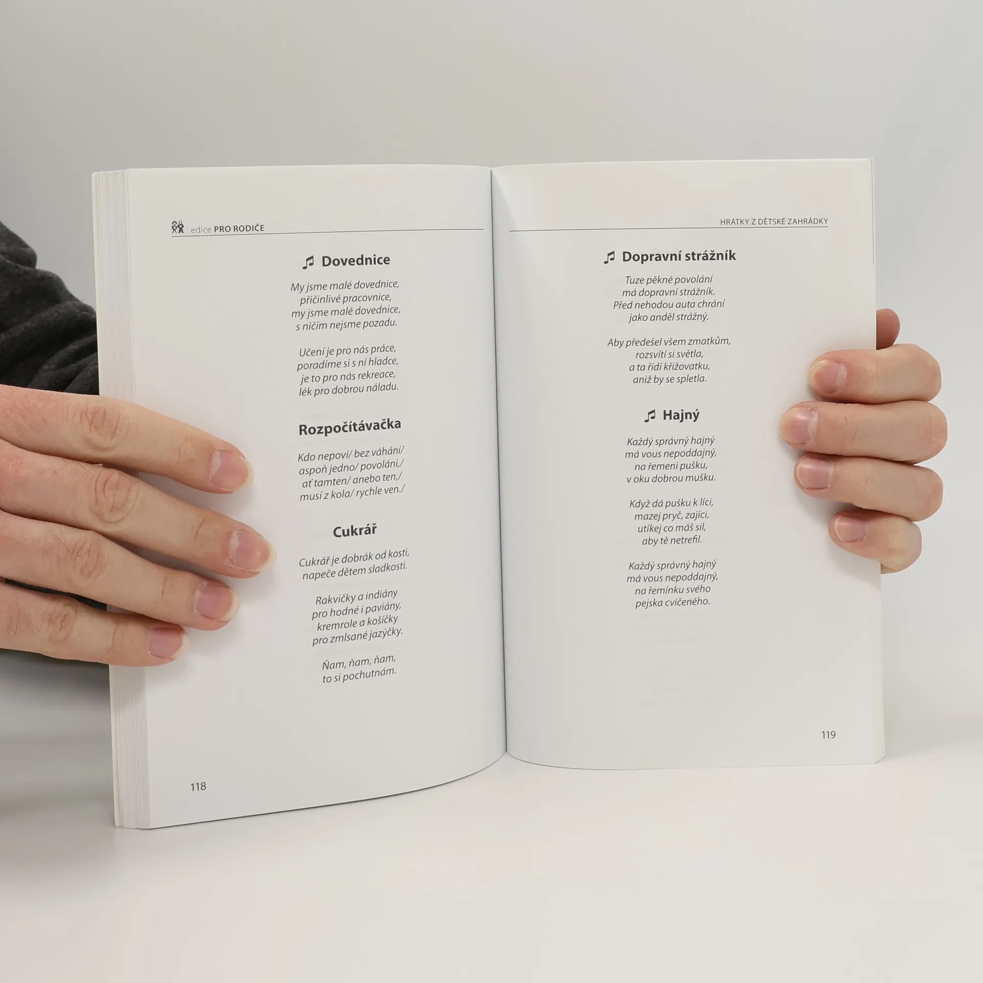 Publikace Hrátky z dětské zahrádky je plná poezie pro děti, psané nejen pro čtení, ale i naslouchání. Poezie v sobě nese vždy zárodek nějaké další činnosti. Jinými slovy – v jednotlivých částech knížky slouží ke hře dětí. A tak v kapitole Malovaná říkadla je rytmus verše i rytmem k malování, v části pojmenované Rýmované hádanky v sobě rým skrývá vyluštění hádanky, v oddíle Povídání s ozvěnou je úkolem dětí odposlouchat ozvěnu z prvního verše a najít k ní odpovídající rým. A nakonec v poslední kapitole – Bude z tebe bude – jsou verše nejen základem hry na povolání, ale dají se použít i k recitaci nebo zpěvu. Některé z nich jsou zhudebněny a jejich jednoduchý notový záznam najdete ve Zpěvníčku na konci knihy. Ve spojení s učením J. A. Komenského „Škola hrou“ a moudrem J. Suchého, že „…trocha poezie nikoho nezabije“, posíláme tuto publikaci do světa s přáním, aby zaujala a pobavila nejen děti, ale i rodiče a pedagogy, bez jejichž spolupráce by tato útlá knížka zůstala jen pouhým torzem.