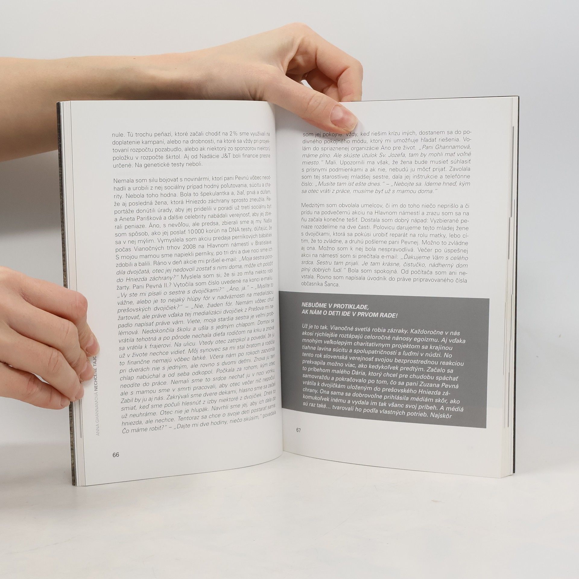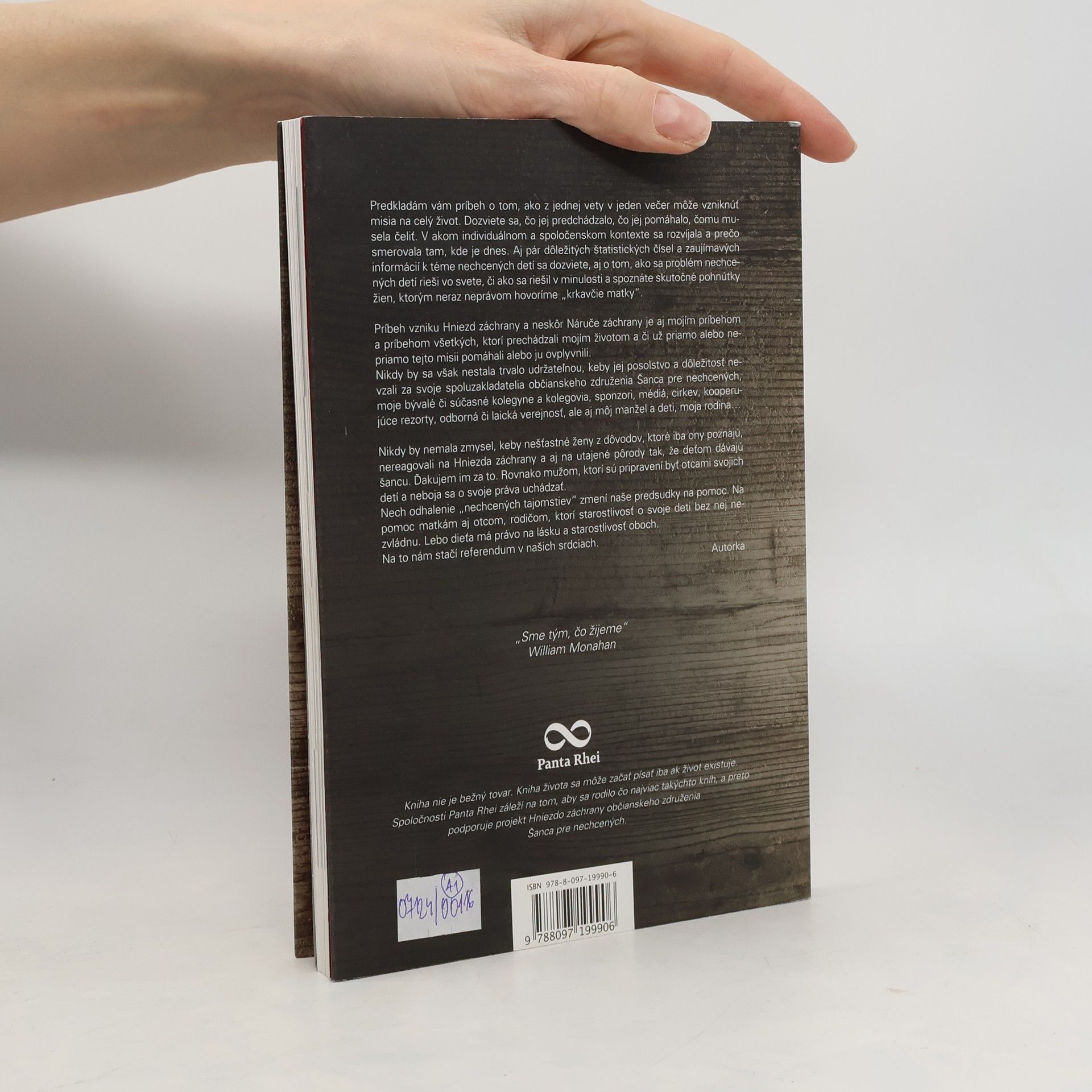 Predkladám príbeh o tom, ako jedna veta môže viesť k celoživotnej misii. Zistíte, čo jej predchádzalo, čo ju podporovalo a s čím sa musela vyrovnať. Objavíte kontext, v ktorom sa rozvíjala, a dôvody, prečo dosiahla súčasný stav. Dozviete sa aj dôležité štatistiky a zaujímavosti o nechcených deťoch, o tom, ako sa tento problém rieši vo svete a ako sa s ním zaobchádzalo v minulosti. Spoznáte skutočné motívy žien, ktorým často nezaslúžene hovoríme krkavčie matky. Príbeh vzniku Hniezd záchrany a Náruče záchrany je aj mojím osobným príbehom a príbehom všetkých, ktorí ovplyvnili túto misiu. Bez podpory spoluzakladateľov, kolegov, sponzorov a médií by sa však nikdy nestala trvalo udržateľnou. Jej význam by sa vytratil, keby nešťastné ženy, z dôvodov, ktoré poznajú len ony, nereagovali na Hniezda záchrany a utajené pôrody, čím dávajú deťom šancu. Ďakujem aj mužom, ktorí sa neboja uchádzať o svoje práva ako otcovia. Nech odhalenie týchto tajomstiev zmení predsudky na pomoc rodičom, ktorí bez podpory nezvládnu starostlivosť o svoje deti. Každé dieťa má právo na lásku a starostlivosť oboch rodičov, a na to nám stačí referendum v našich srdciach.